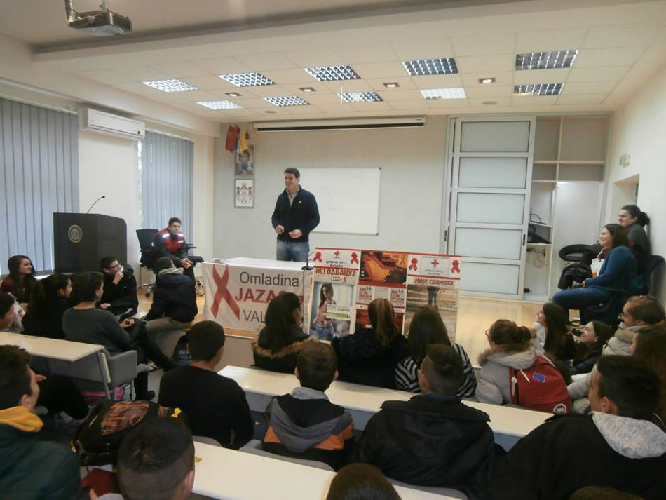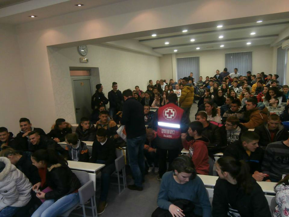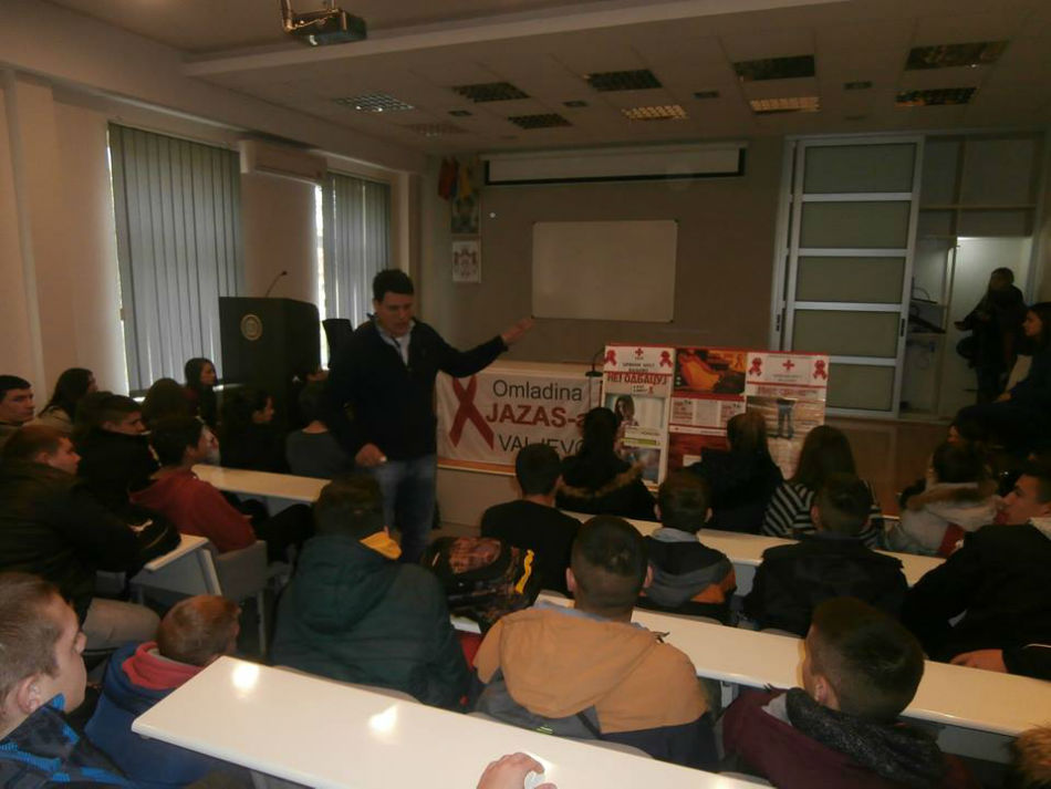 Predavanju na temu prevencije HIV-a i SIDE u srednjoj Poljoprivrednoj školi sa domom učenika u Valjevu prisustvovalo je oko 120 učenika kojima su edukovani predavači preneli važne i značajne informacije a volonteri Crvenog krsta Valjevo podelilisu odgovarajući preventivno-edukativni materijal i kondome.