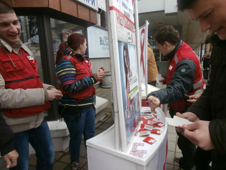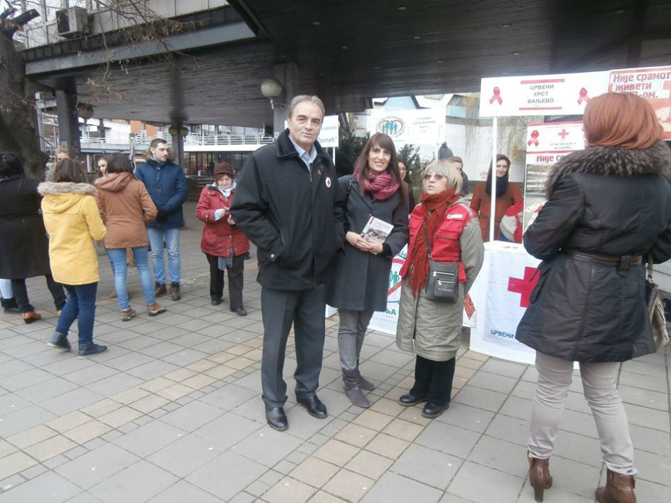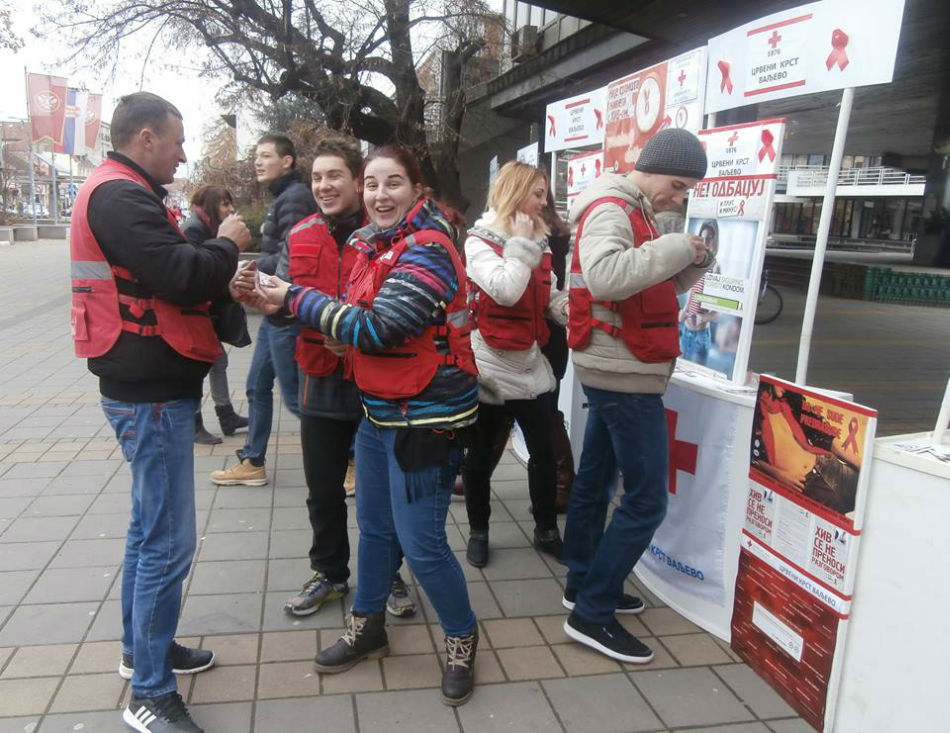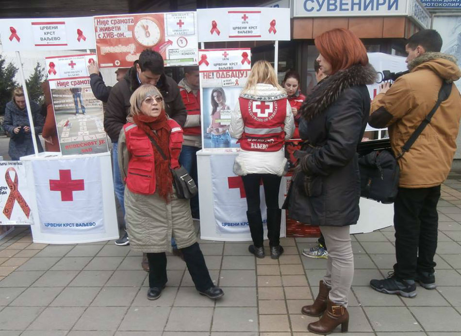 Volonteri Crvenog krsta Valjevo su informisali prolaznike i uručivali edukativni promotivni i preventivni materijal i kondome koji su obezbeđeni u saradnji sa Gradskom upravom, Jazzas-om, Službom polivalentne patronaže Doma zdravlja Valjevo i lokalnim donatorima.