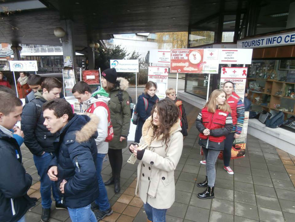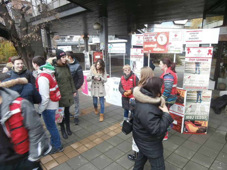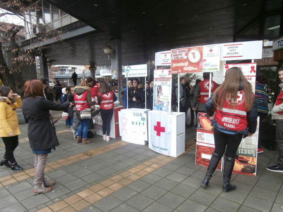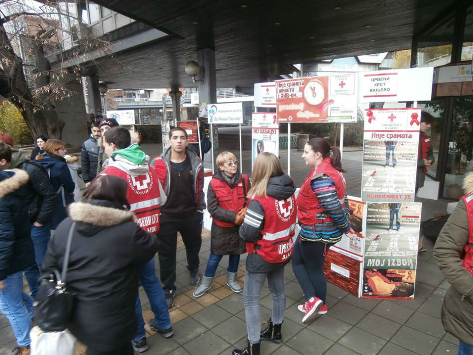 Crveni krst Valjevo realizovao je svoju tradicionalnu aktivnost kojom je obeležen 1. decembar - Svetski dan borbe protiv HIV/SIDE zajedno sa svojim volonterima, članovima podmlatka i omladine, saradnicima i partnerima, na Centralnom gradskog trgu u Valjevu sa simboličnim početkom u 5 minuta do 12, na kojoj smo, pored primerene scenografije, posetiocima i prolaznicima delili adekvatan promotivni i preventivni materijal u vidu brošura, lifleta i kondoma.