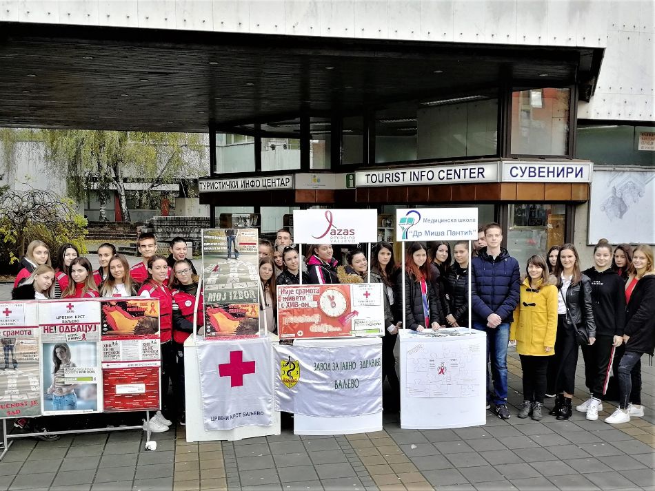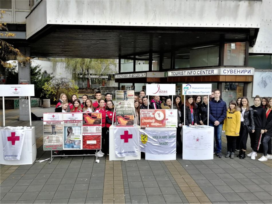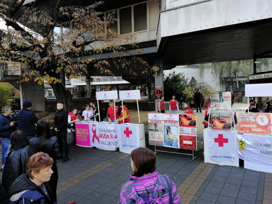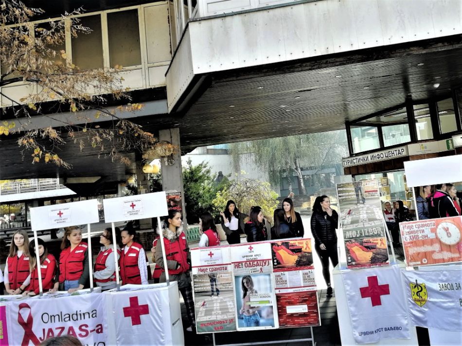 Crveni krst Valjevo je uličnom manifestacijom na centralnom Gradskom trgu, kojoj je prethodila konferencija za novinare dan ranije, obeležio 1. decembar - svetski dan borbe protiv side, pod sloganom „Društvo doprinosi napretku“.Zajedno sa ostalim volonterima Crvenog krsta Valjevo u akciji su učestvovali i vršnjački edukatori za prevenciju side i očuvanje reproduktivnog zdravlja, koji su članovi sekcija Crvenog krsta u svojim matičnim srednjim školama, a potrebna znanja stekli su kroz program „SPOT – Saznaj, promoviši, obrazloži, testiraj!“ Ovi mladi ljudi će i mimo decembarske kampanje borbe protiv side nastaviti da sprovode vršnjačku edukaciju jer je to model koji daje najbolje rezultate u ovoj oblasti javnog zdravlja. Događaju na gradskom trgu prisustvovali su novinari Regionalne VTV televizije, TV VA PLUS, lokalnog list NAPRED i portala va014.info.