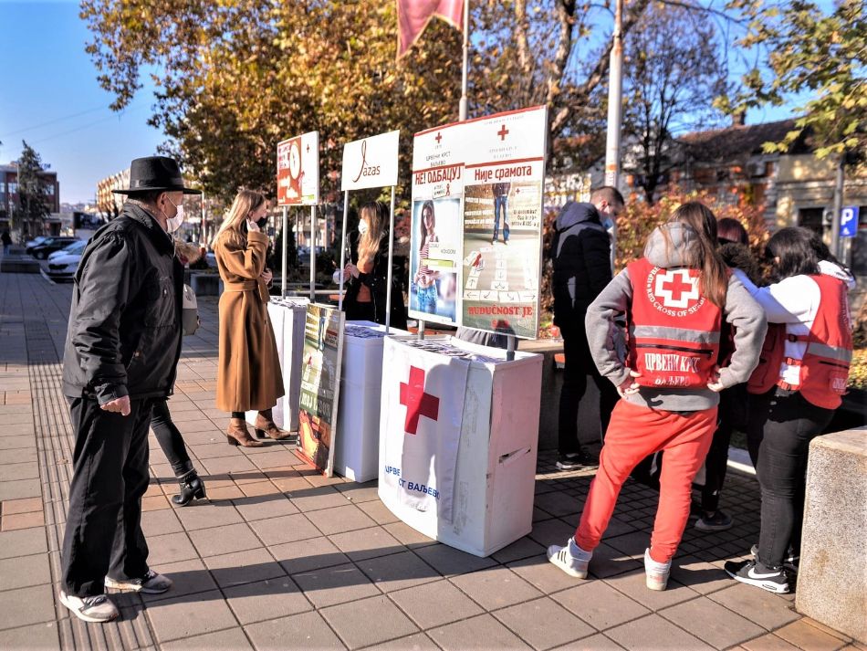 Nakon konferencije za novinare prisutni volonteri Crvenog krsta Valjevo su, uz korišćenje zaštitnih rukavica i maski, posetiocima i prolaznicima delili kondome i brošure. U ovoj aktivnosti učestvovali su i učenici Medicinske škole, njihovi nastavnici praktične nastave, kao i kolege iz Patronažne službe Doma zdravlja Valjevo i Omladine JAZAS-a. Ovog puta, zbog akcenta na ličnoj bezbednosti realizatora i bezbednosti sugrađana, nije bilo uobičajnog savetovanja i testiranja; već je samo deljen zdavstveno preventivno edukativni materijal i kondodmi „an pasan“ bez zadržavanja.