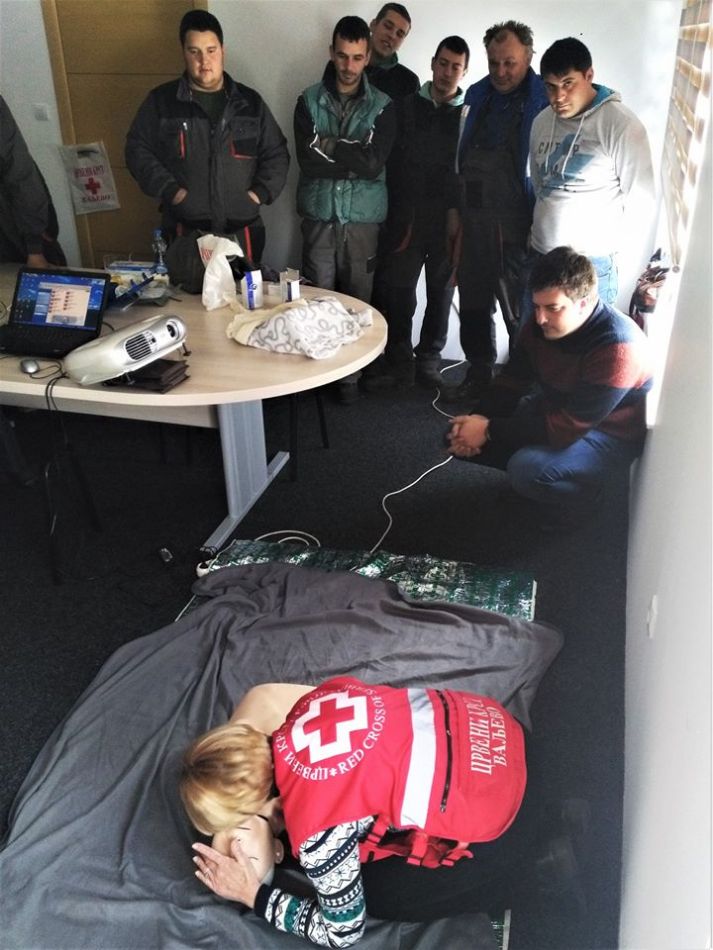 Crveni krst Valjevo je u Privednom društvu „PCTEL“ doo izvršio osnovnu obuku iz prve pomoći za 16 stalno zaposlenih radnika koji rade na terenu veoma izazovne i rizične poslove