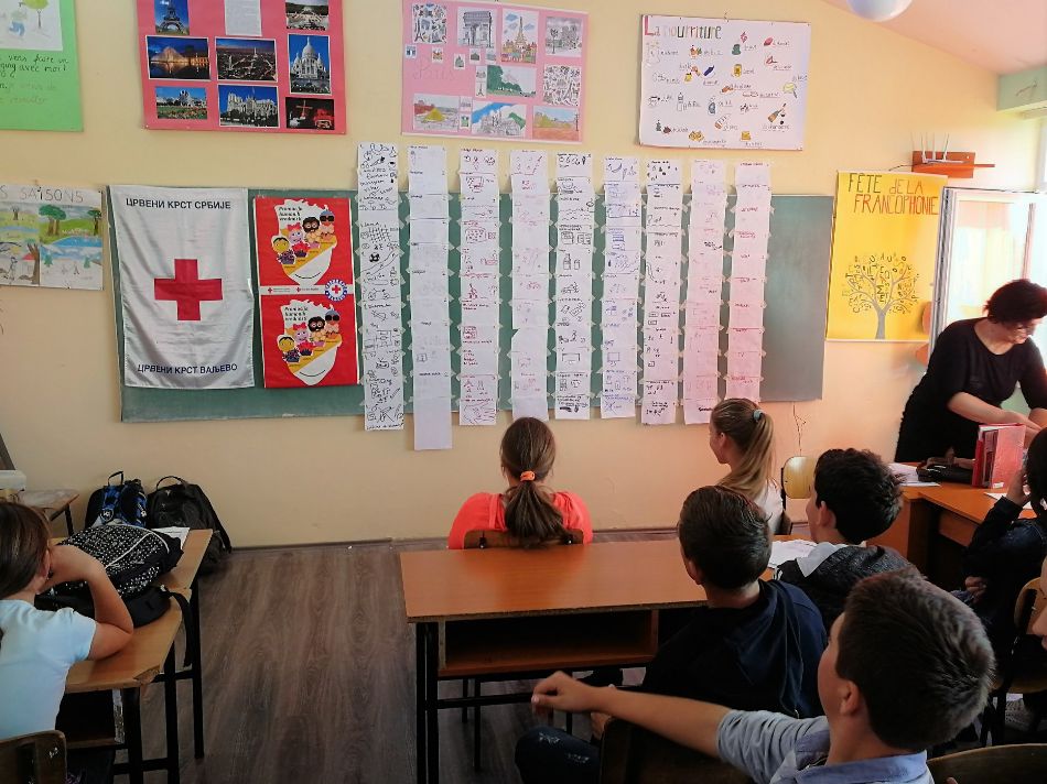 U nastavku svojih aktivnosti u toku Dečje nedelje Crveni krst Valjevo posetio je učenike i njihove nastavnike u OŠ „Milovan Glišić“ u Valjevskoj Kamenici gde je realizovao edukativna predavanja na temu Bezbednost dece u saobraćaju za učenike prvog i trećeg razreda i kreativne radionice iz programa PHV (modul-TOLERANCIJA) za uzrast sedmog i osmog razreda.