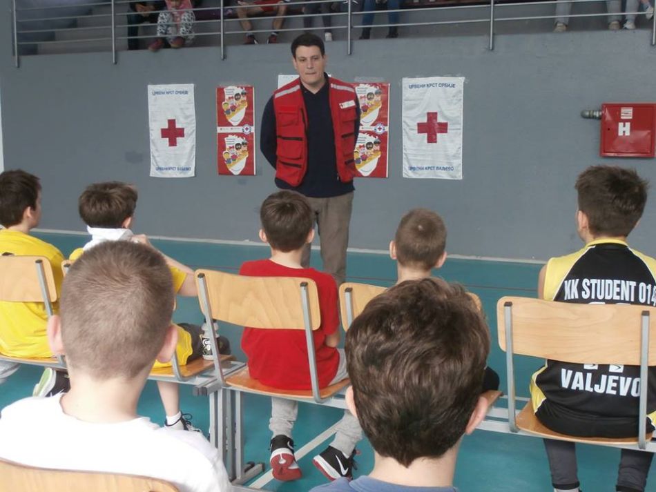 Crveni krst Valjevo je u nedelju, 4. februara u hali KK „Student“ iz Valjeva, u dogovoru sa organizatorima, učestvovao u nedeljnoj aktivnosti - Porodično druženje i humanitarni turnir „Za malu Nađu“ kroz realizaciju edukativnih radionica Crvenog krsta Valjevo iz oblasti difuzije i Promocije humanih vrednosti pod nazivom „Za dobrotu svaki dan je – dobar dan“. U skladu sa planiranim aktivnostima, ovo je bila i prilika da se sa najmlađim košarkašima, njihovim roditeljima, prijateljima i trenerima promovišu humane vrednosti, a istovremeno im se omoguće i dodatna znanja.