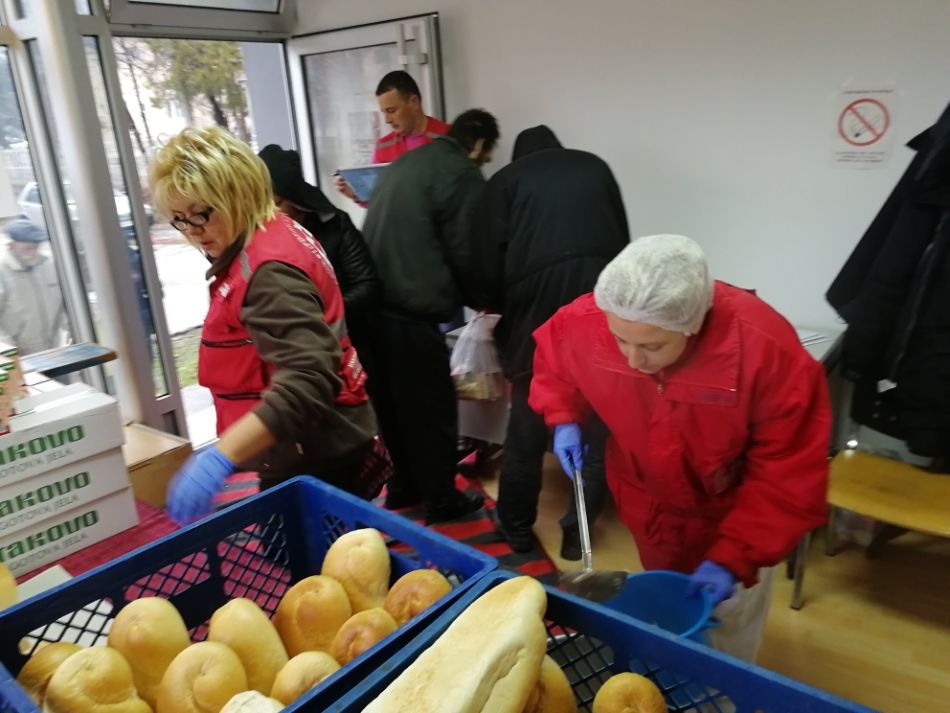 Crveni krst Valjevo je, i ove godine, iz sopstvenih sredstava fonda za narodnu kuhinju, obezbedio i podelio dodatnih 1.000 konzerviranih gotovih kuvanih jela korisnicima Narodne kuhinje u Valjevu za Božićne praznike a sve ovo radi poboljšanja kvaliteta života i našeg doprinosa da se na human i čovečan način brinemo o položaju ove socijalno najugroženije kategorije stanovnika u našem gradu, posebno u zimskim mesecima kada je do hrane značajno teže doći.