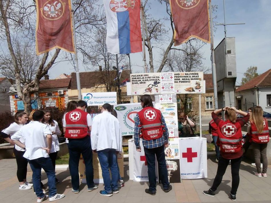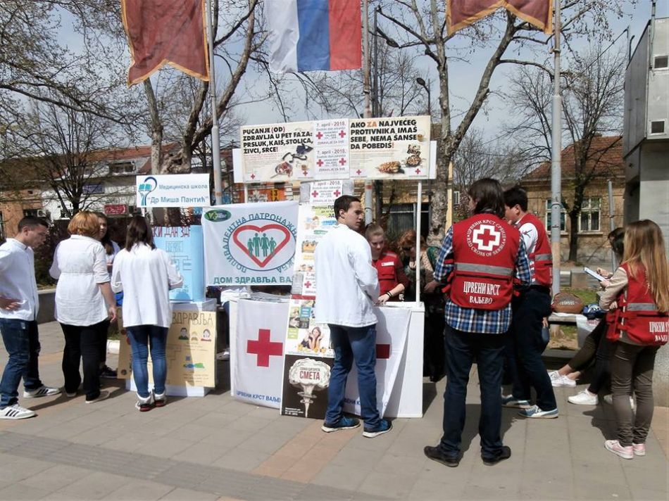 Crveni krst Valjevo je i ove godine aktivno obeležio Svetski dan zdravlja – 7. april. čiju smo aktivnost zbog Uskršnjih praznika realizovali u sredu 11. aprila, kao centralnu uličnu manifestaciju na Gradskom trgu. Uzimajući u obzir, da je javno zdravlje i zdravlje svakog pojedinca tema koja nema ni vreme, ni rok, ovaj izuzetak u pomeranju datuma, suštinski i tematski, nije odstupio od ideje, da se usluge od značaja za opšte zdravlje stanovništva učine dostupnijim, što je bio i ovogodišnji slogan Svetskog dana zdravlja „Zdravlje za sve“. Događaj je izazvao, više nego zadovoljavajuću medijsku pozornost pa su ga ispratile tri televizije, regionalana „VTV“ i dve lokalne „TV Marsh“ i „Televizija Valjevo Plus“. Aktivnost je pored učenika medicinske škole „dr Miša Pantić“ realizovalo i 14 volontera Crvenog krsta Valjevo i četiri stručna saradnika.
