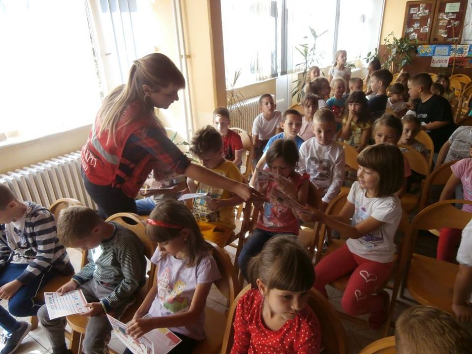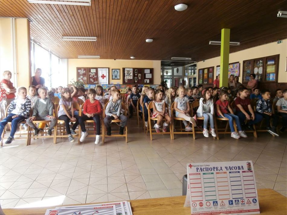 Veoma je važno upoznati ih sa osnovim pravilima ponašanja u saobraćaju a ovaj vid aktivnosti je prilagođen uzrastu prvačića, uz zanimljive filmske segmenate iz serije „Zebra, znak, semafor“, kao i kratkih sekvenci iz filmova „Opasne igre“ („Dunav film“) i „Ulica nije mesto za igru“ („Avala Filma“), uz pomoć kojih na praktičnim primerima mogu naučiti nešto novo, nešto sa čime bi se najčešće mogli suočiti na putu od kuće do škole i obratno. Naši članovi podmlatka su organizovali kratku igricu za prvake sa zanimljivim pitalicama koje su se odnosile na delove iz prikazanih filmova a na kraju su podelili multifunkcionalne edukativne rasporede časova na kojima su na kreativan način, kroz slike i stihove objašnjena pravila ponašanja u saobraćaju, saobraćajni znaci i učesnici u saobraćaju a sve u cilju prevencije i svakodnevnog podsećanja prvačića na bezbedno ponašanje u saobraćaju.