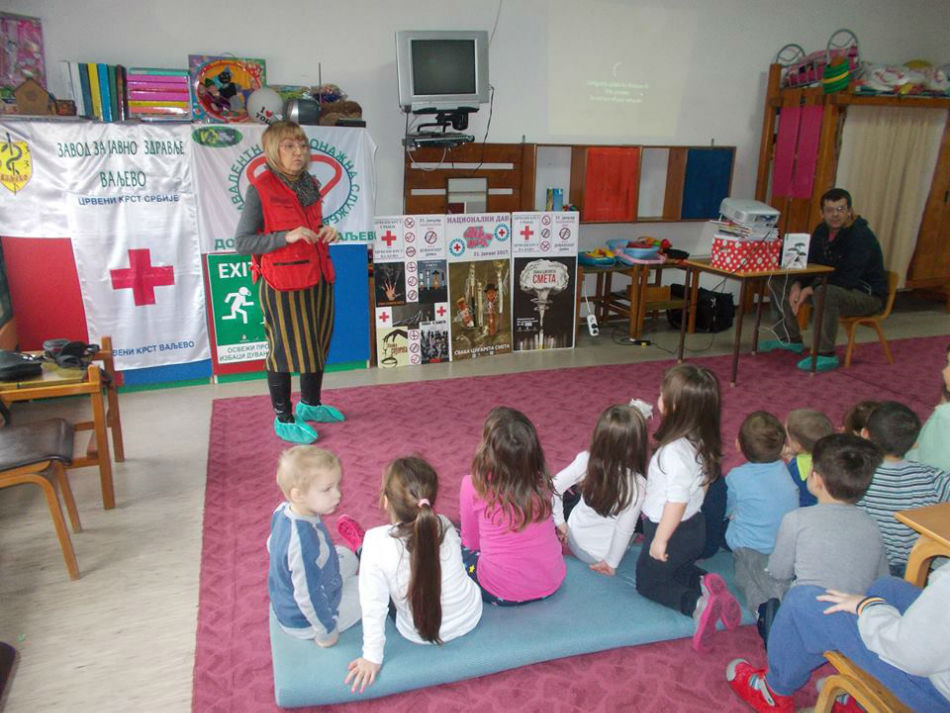 Crveni krst Valjevo je i za predškolce u vrtiću „Kolibri“ održao predavanje i kreativnu radionicu u sklopu prevencije „Bolesti zavisnosti“ na temu „Odrasli puše i mene guše“. Prevencija kao i edukativni program svakako doprinose da se deca u najmlađem uzrastu upoznaju sa ovim porokom.
