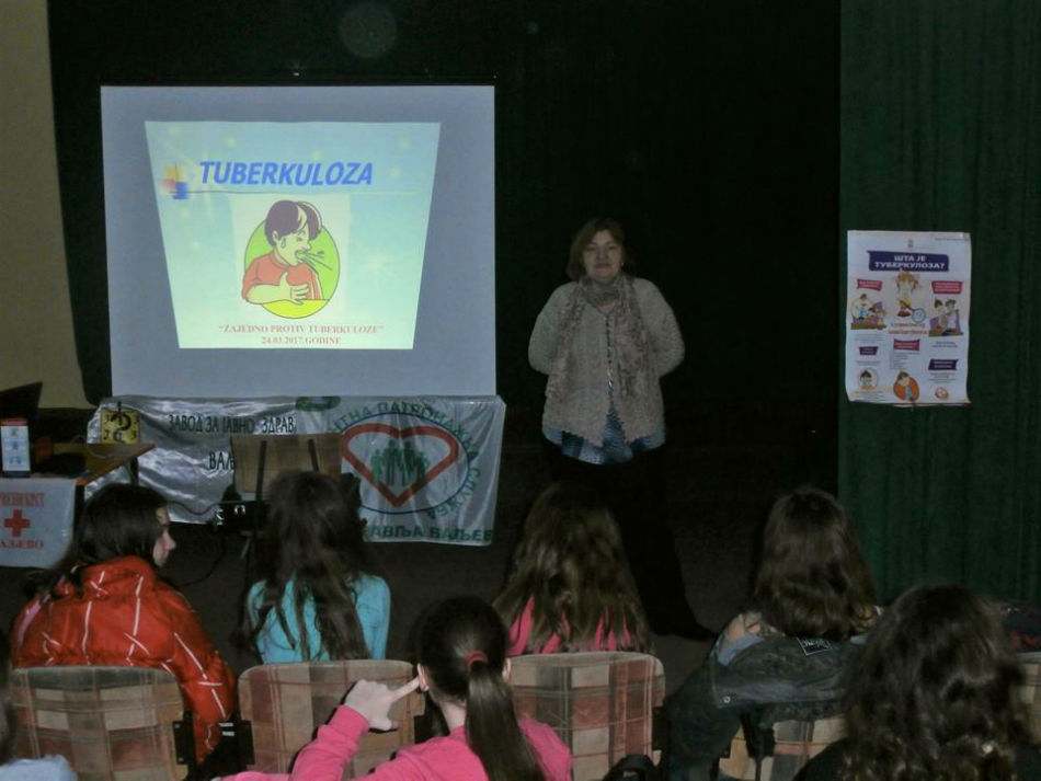 Crveni krst Valjevo je realizovao još jedno predavanje u okviru prevencije TBC-a a sve u susret obeležavanja 24. marta, Svetskog dana borbe protiv tuberkuloze u OŠ „Nada Purić“, ovoga puta za učenike petog razreda, koji su upoznati sa činjenicama o tuberkulozi, kako je prepoznati, sprečiti i lečiti, a sve te informacije objašnjene kroz slike i reči nalaze se u brošurama koje su đaci dobili na kraju predavanja.08.03.2017.