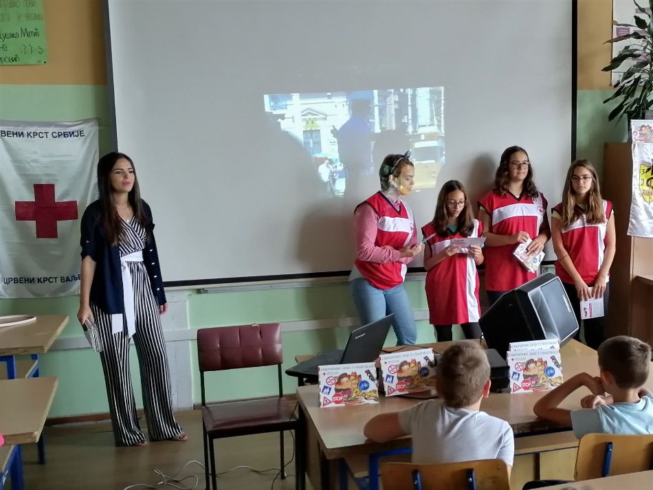 Difuzija: Uvodni deo predavanja bio je posvećen difuziji – upoznavanju prisutnih sa ulogom, misijom, ciljevima i osnovnim principima Crvenog krsta.Edukativna predavanja i kreativne radionice su sprovedene u saradnji sa našim stalnim partnerima: Patronažnom službom Doma zdravlja Valjevo i Zavodom za javno zdravlje Valjevo