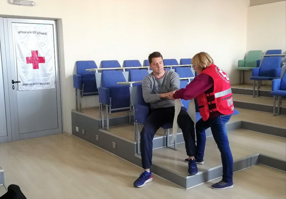 Obuku u pružanju prve pomoći je sprovela zdravstvena saradnica i licencirana instruktorka prve pomoći Crvenog krsta Valjevo – Zrica Jovanović, koja je polaznicima pružila znanja i veštine da pruže prvu pomoć onome kome je neophodna, do dolaska Hitne medicinske pomoći. Sve ovo je demonstrirano kroz praktične primere a u ulozi demonstratora je bio naš saradnik za podmladak i omladinu Aleksandar Tomić.