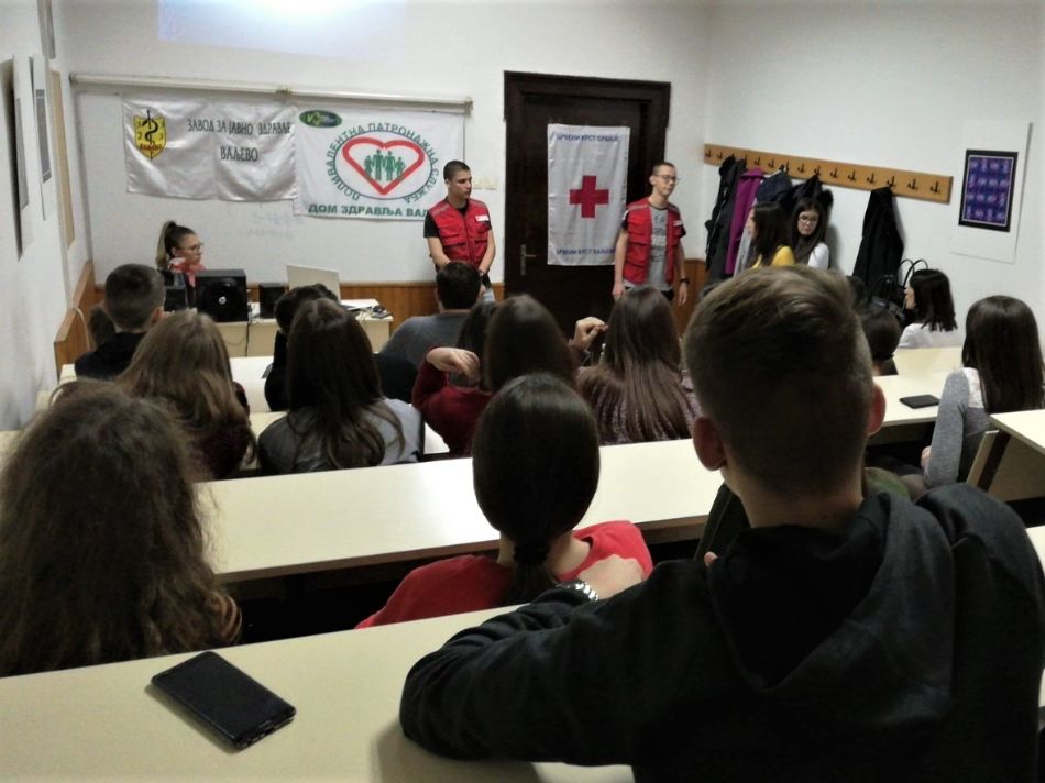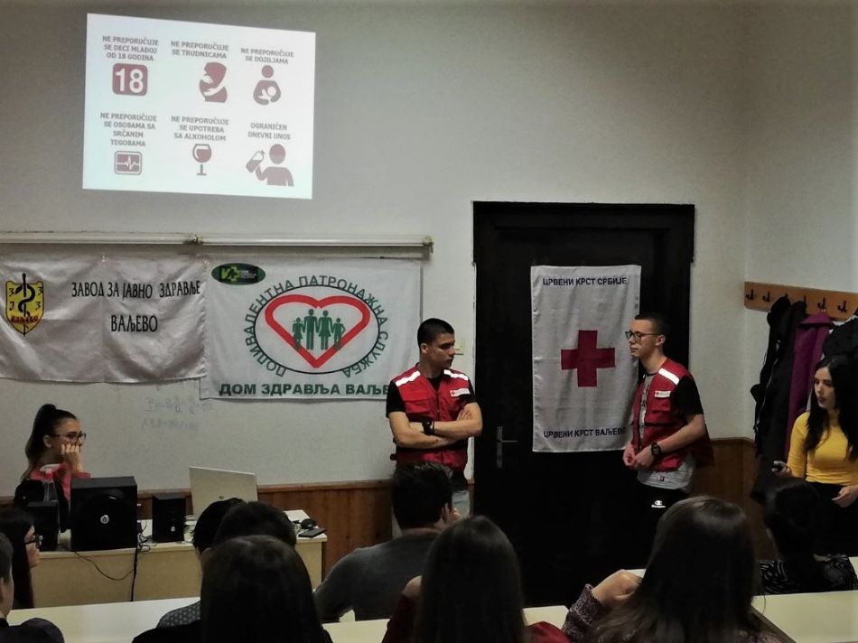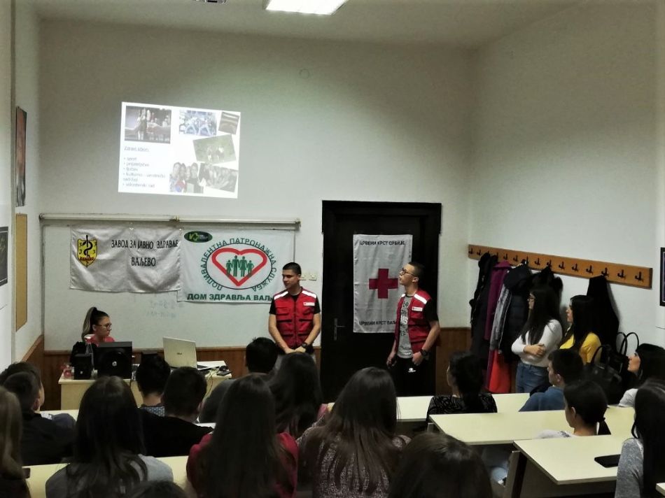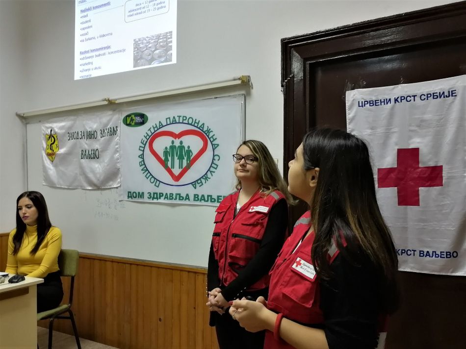Ovo su bila i prva predavanja za naših 6 novoosposobljenih vršnjačkih edukatora iz programa „Alkoholizam mladih“ Mine Lazić, Teodore Čikarić, Ksenije Njegomirović, Jovane Tripunovski, Mateje Rosića i Jovana Stojakovića, i prilika da na delu primene stečena znanja stečena na sedmodnevnoj obuci. Predavanja koja su realizovana u medijateci Valjevske gimanazije su protekla u dobroj interakciji prisutnih, sa puno novih činjenica sa kojima su se po sopstvenom priznanju po prvi put upoznali baš od strane edukatora. Sve ovo su zajedno osmislili u okviru partnerske saradnje, stručni saradnici Crvenog krsta Valjevo, Zavoda za javno zdravlje Valjevo, Službe polivalentne patronaže i Savetovalištva za mlade Doma zdravlja Valjevo.