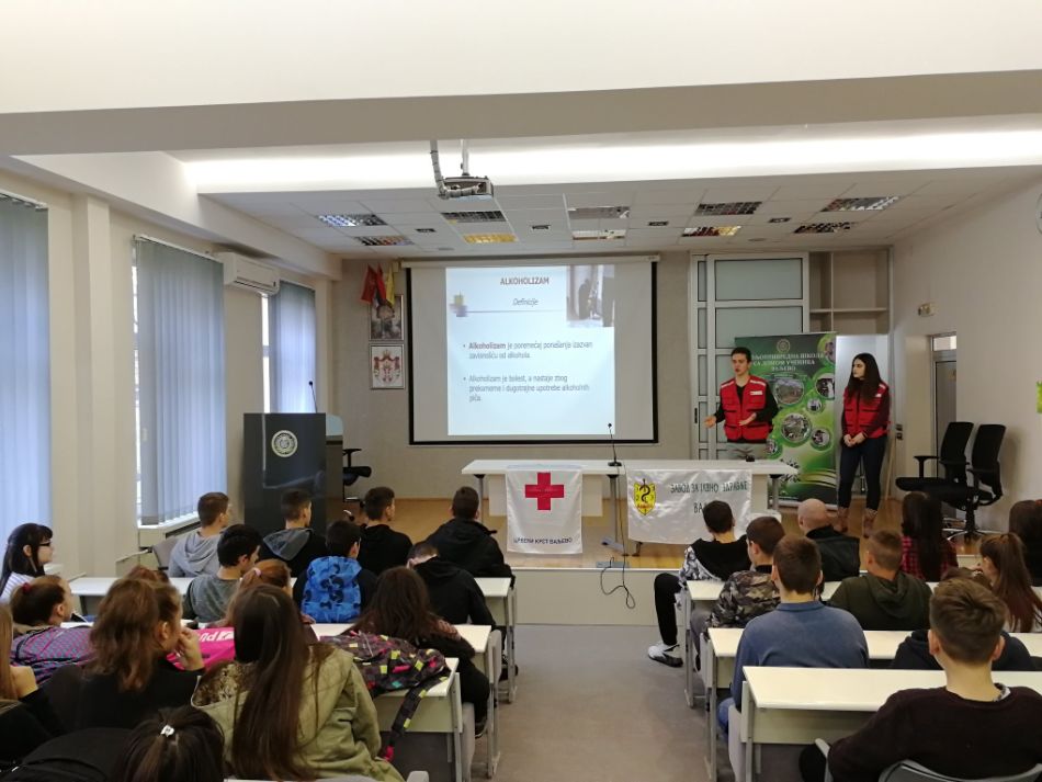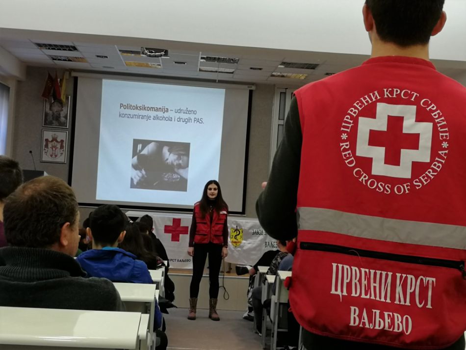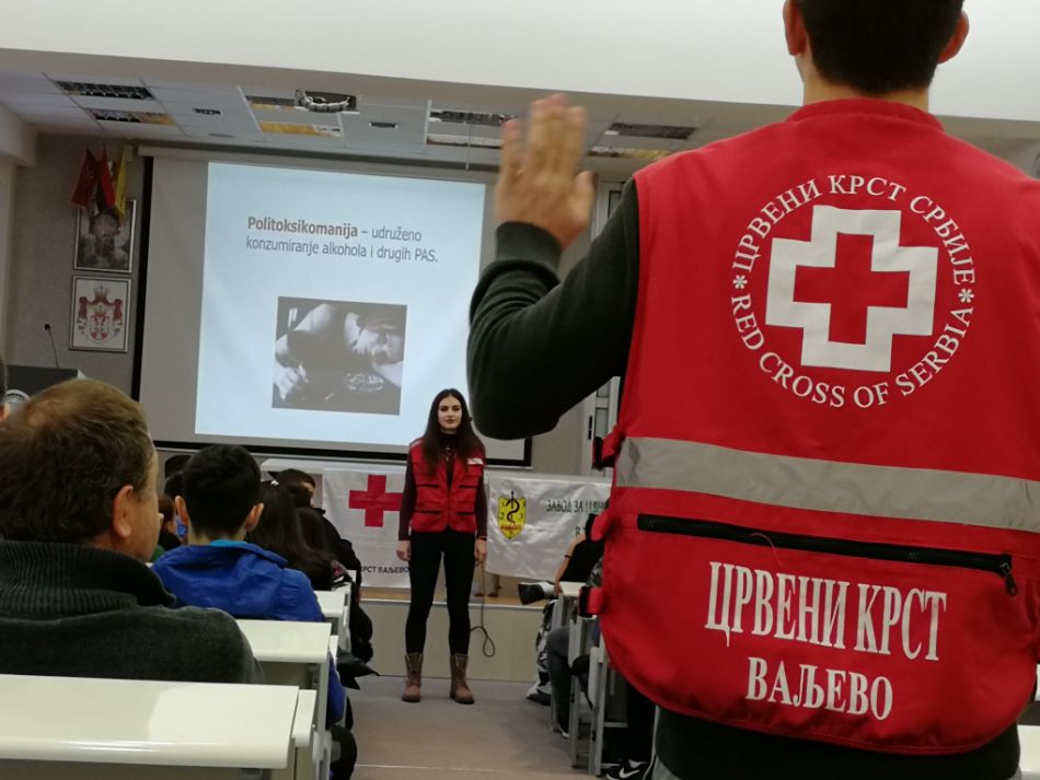 Crveni krst Valjevo je, u sklopu sveobuhvatne kampanje po srednjim školama, nastavio sa realizacijom preventivnih predavanja sa svojim vršnjačkim edukatorima, ovoga puta sa Darkom Gligorijevićem i Ivanom Kostadinović iz našeg programa „Alkoholizam mladih“, za učenike Poljoprivredne škole sa domom učenika „Valjevo“, kako bi svi učenici prve godine (šest odeljenja) njih 131 u dva uzastopna dana, posle prevencije trgovine ljudima, učestvovali u ovoj važnoj i sveobuhvatnoj edukaciji preventivnog karaktera, ovoga puta na temu prevencije alkoholizma kod mladih. Ovo predavanje je realizovano u sklopu dogovora sa predstavnicima. Ovo su bila i prva predavanja vršnjačkih edukatora, Darka Gligorijevića i Ivane Kostadinović programa „Alkoholizam mladih“ koji su zajedno osmislili stručni saradnici Zavoda za javno zdravlje Valjevo, Službe polivalentne patronaže i Savetovalištva za mlade Doma zdravlja Valjevo i Crvenog krsta Valjevo. Predavanja koja su realizovana u svečanoj sali su protekla u dobroj interakciji prisutnih, sa puno novih činjenica sa kojima su se po sopstvenom priznanju upoznali, baš od strane edukatora.