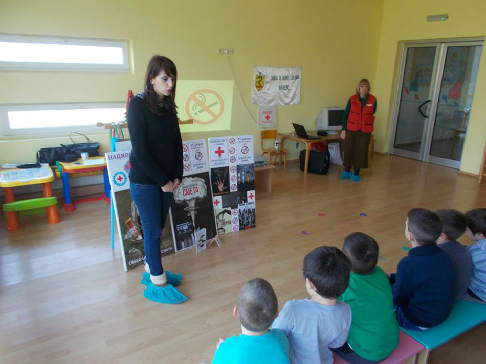 Crveni krst Valjevo posetio je i obdanište „Bubamara“ i u sklopu prevencije „Bolesti zavisnosti“ na temu „Odrasli puše i mene guše“, realizovao je predavanje i kreativnu radionicu, čime se veoma slikovito i prilagođeno predškolskom uzrastu, deci budi svest o štetnosti duvanskog dima. Svaka preventiva u ovom uzrastu veoma je značajna.