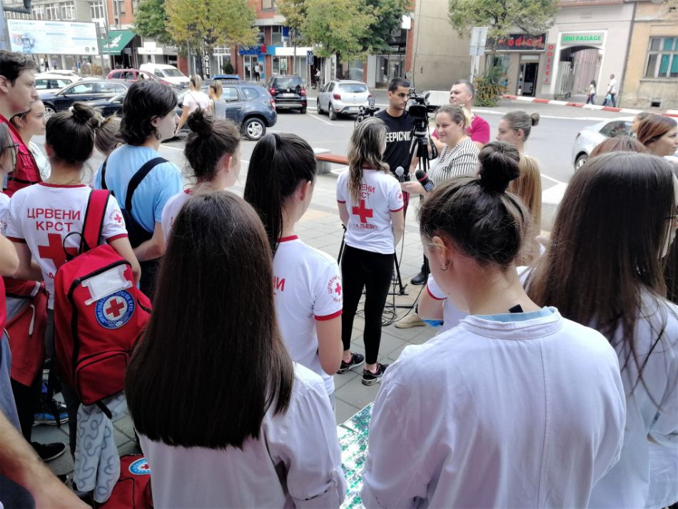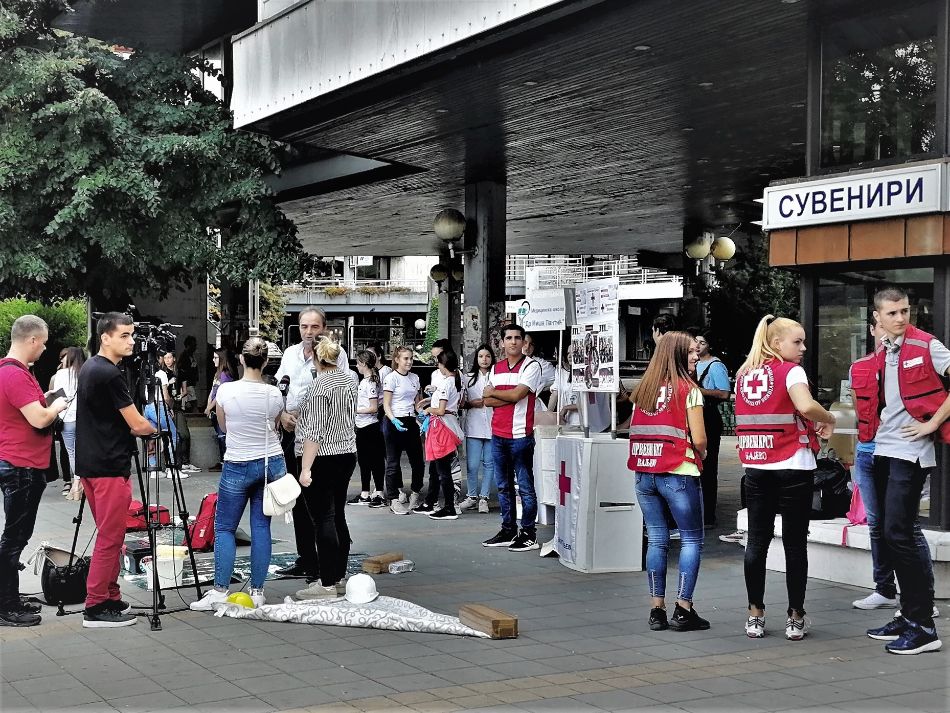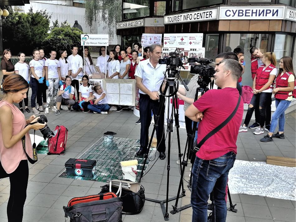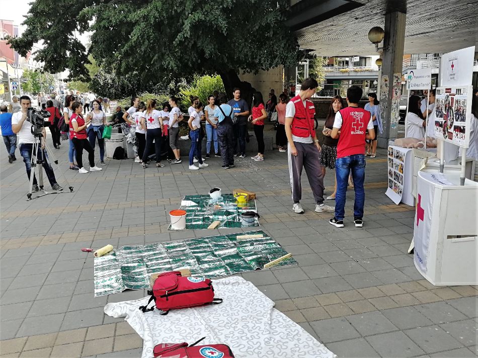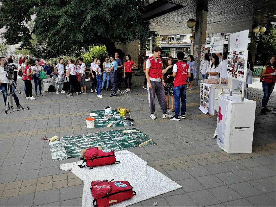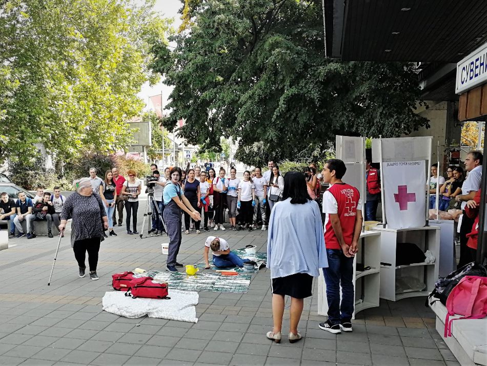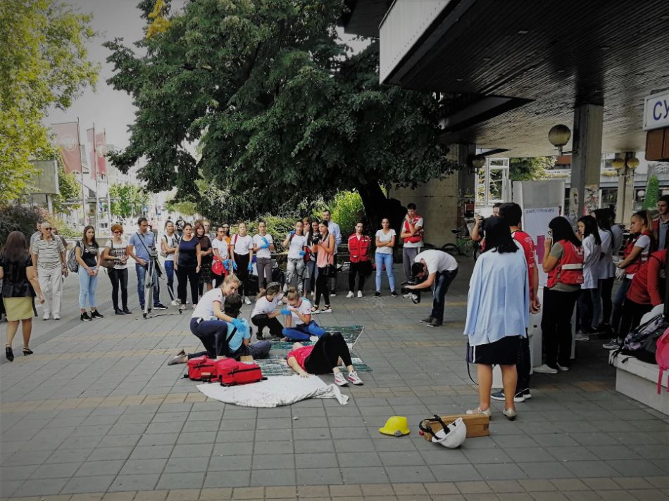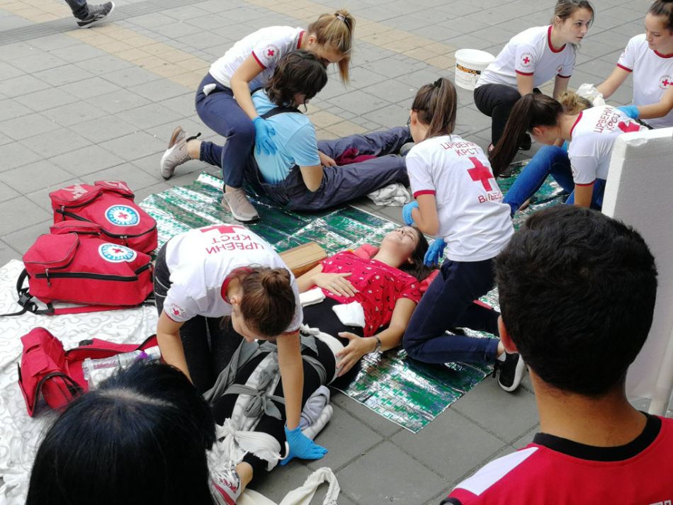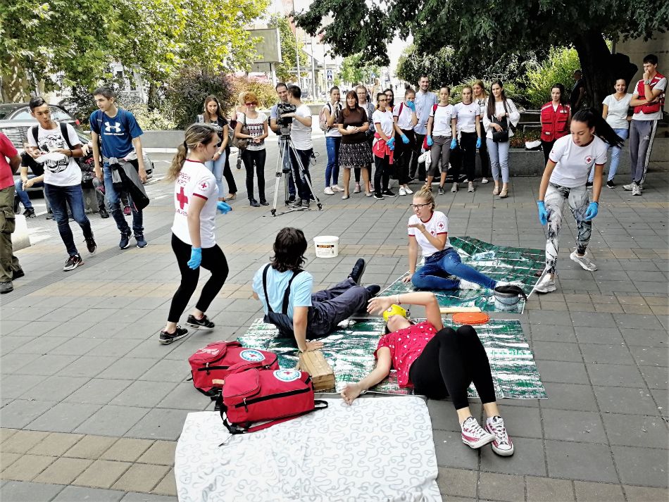 Pokazne vežbe su izvodili naši obučeni mladi članovi takmičarskih ekipa iz pružanja prve pomoći i realističkog prikaza povreda, stanja i obolenja koje su se plasirale na republično takmičenje koje će biti održano u subotu, 21. septembra u Beogradu.