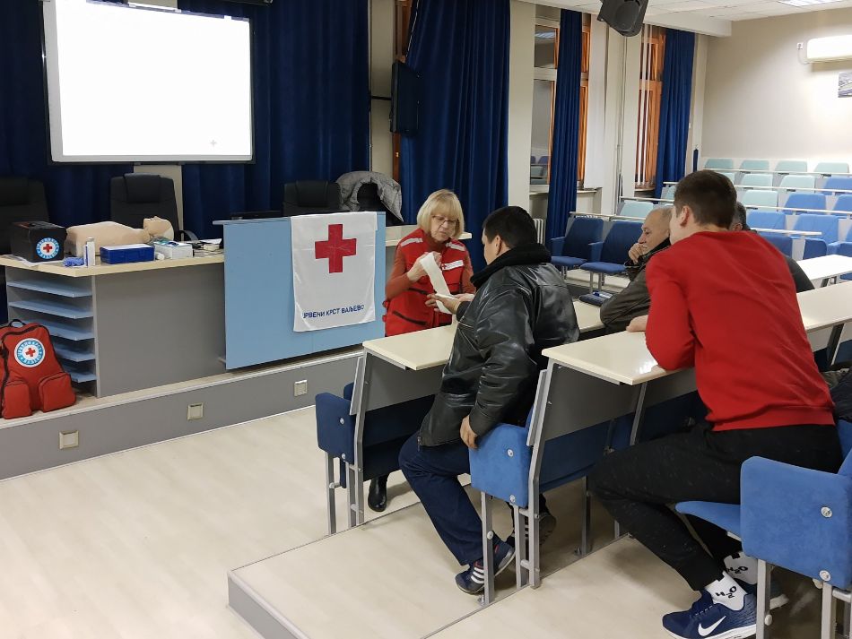 Crveni krst Valjevo je, na zahtev Tehničke škole Valjevo, još jednom realizovao nekomercijalnu obuku iz prve pomoći za zaposlene, za novih 6 (šest) radnika obezbeđenja u sklopu svojih ostalih aktivnosti na osposobljavanju i licenciranju u Tehničkoj školi Valjevo.