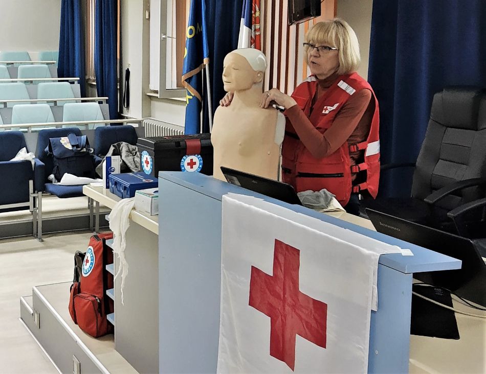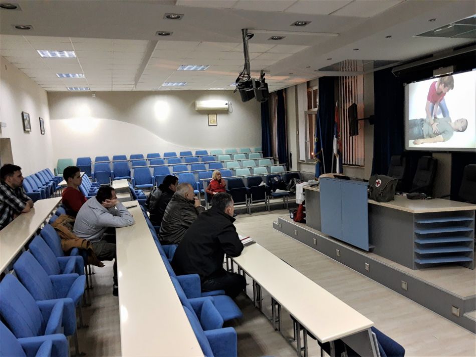 Obuka je realizovana kroz predavanja uz korišćenje video prezentacije, filma, demonstraciju veština kao i praktično uvežbavanje od strane polaznika. Na kraju obuke je urađena teorijska i praktična provera znanja. Obuku je realizovala naša licencirana instruktorka prve pomoći Crvenog krsta Valjevo – Zrica Jovanović uz asistenciju demonstratora Crvenog krsta Valjevo Aleksandra Tomića. Na kraju su polaznici obuke proverili svoja znanja na evaluacionom testu i time pokazali da su uspešno savladali teorijski deo obuke.