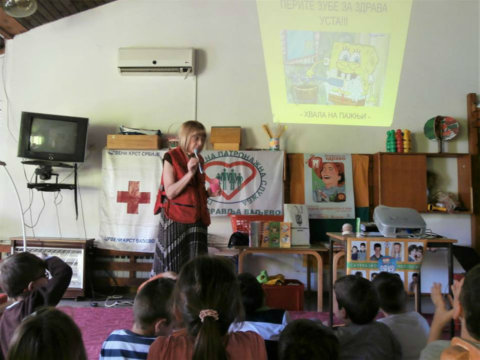 Crveni krst Valjevo je, zajedno sa partnerima, započeo realizaciju niza predavanja i radionica, ovoga puta u vrtiću „Kolibri“ realizovli smo predavanje i kreativnu radionicu za predškolce u okviru Nedelje zdravlja usta i zuba pod sloganom „Osmehni se zdravo“. Pored adekvatne prezentacije u elektronskoj formi i demonstracije kako pravilno koristiti četkicu prilikom pranja zuba, govorili smo i o značaju redovnog odlaska kod stomatologa, kako izgleda popravka zuba a bilo je reči i o značaju pravilne ishrane tj. namirnicama koje mogu oštetiti zube. Interesovanje i radoznalost dece je bila velika te su postavljali razna pitanja u vezi održavanja higijene usta i zuba, na koja su dobili adekvatne i stručne odgovore.