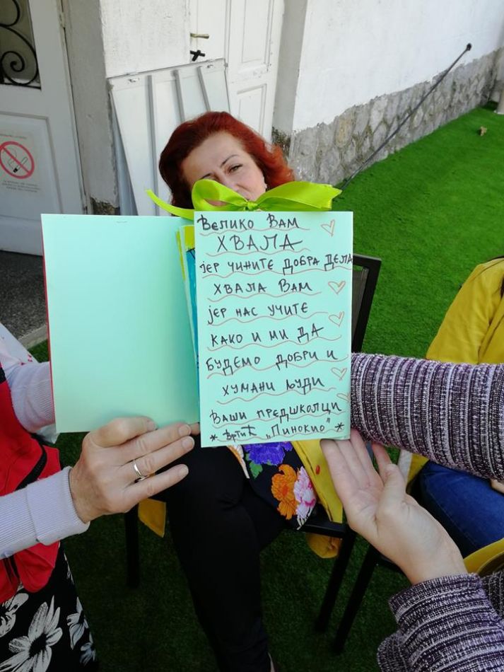 U znak zahvalnosti i lepe saradnje, mališani i njihovi vaspitači su priredili predavanje na temu „Šta znaš o Crvenom krstu“, a od njih smo dobili i predivne čestitke zahvalnosti sa crtežima posvećenim Crvenom krstu. Crveni krst Valjevo je dobio i zahvalnicu za rad i angažovanje na zajedničkom projektu na temu pravilne ishrane sa svojim stalnim partnerima iz Zavoda za javno zdravlje Valjevo i Patronažne službe Doma zdravlja Valjevo. Bilo je veliko zadovoljstvo družiti se sa razdraganim Pinokijevcima po divnom danu okupanom sunčevim zracima i britkim dečjim mislima.