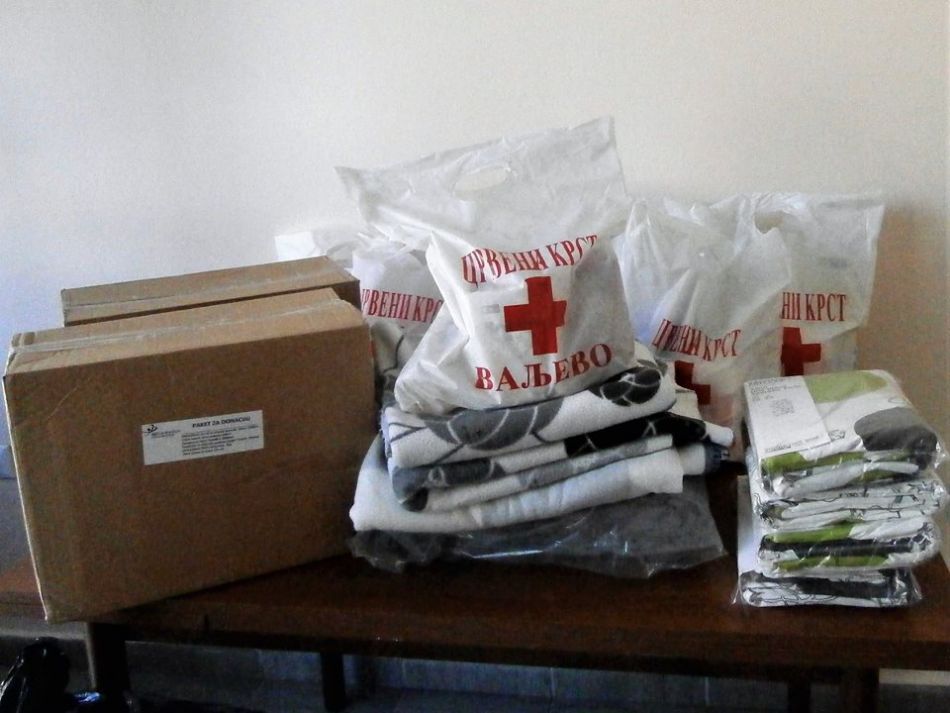 Crveni krst Valjevo je pripremio, spakovao i uručio pakete higijene, prehrambene pakete, nove posteljine i ćebad za decu i odrasle kao i izvesnu količinu garderobe za različite uzraste, i uz asistenciju OŠ “Milovan Glišić“ u Valjevskoj Kamenici