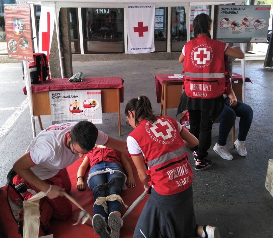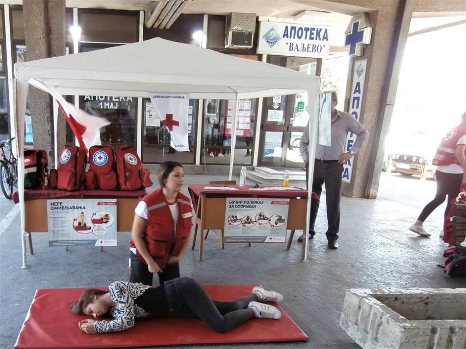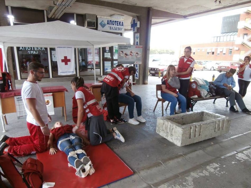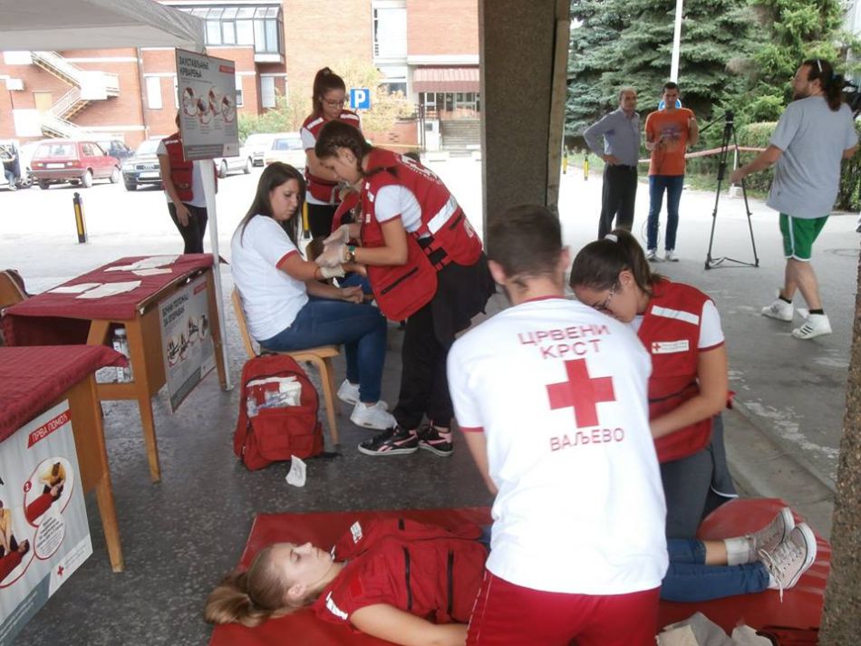 Crveni krst Valjevo je u nedelju, 17. septembra, a u skladu sa tematskom preporukom za obeležavanje Svetskog dana prve pomoći, pod motom „Nezgode u kući – kako postupiti i pružiti prvu pomoć“, realizovao pokaznu vežbu i realistički prikaz povreda i stanja koju su u periodu od 08 do 13 časova sproveli članovi ekipa prve pomoći Crvenog krsta Valjevo, na platou ispred glavnog ulaza u Opštu bolnicu Valjevo.