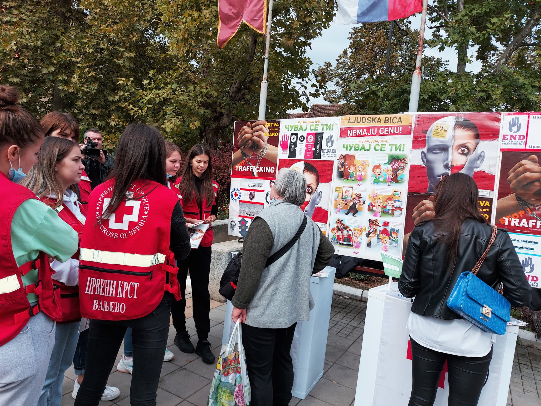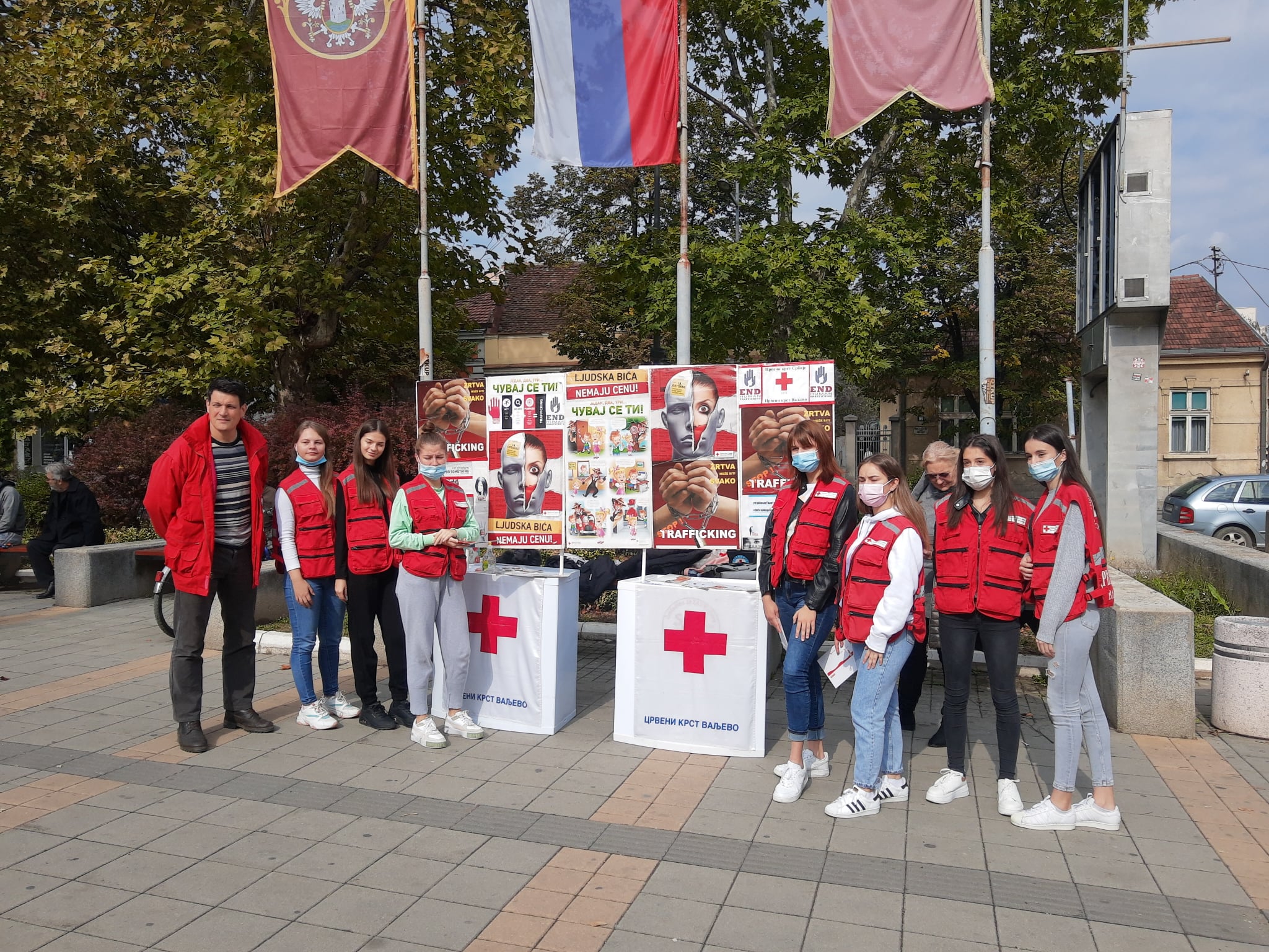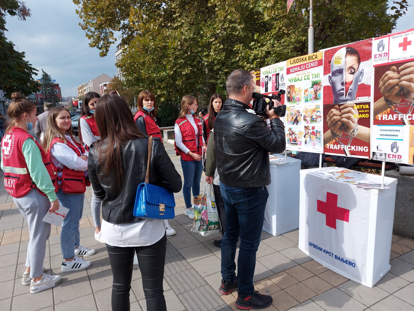 Crveni krst Valjevo je aktivno obeležio 18. oktobar, Evropski dan borbe protiv trgovine ljudima, na Gradskom trgu u centru grada, realizujući centralnu uličnu aktivnost uz aktivno angažovanje mladih volontera u periodu od 11:30 do 13 časova sa ciljem skretanja pažnje javnosti na ovaj itekako prisutan problem modernog doba sa porukom #BližeJeNegoŠtoMisliš.