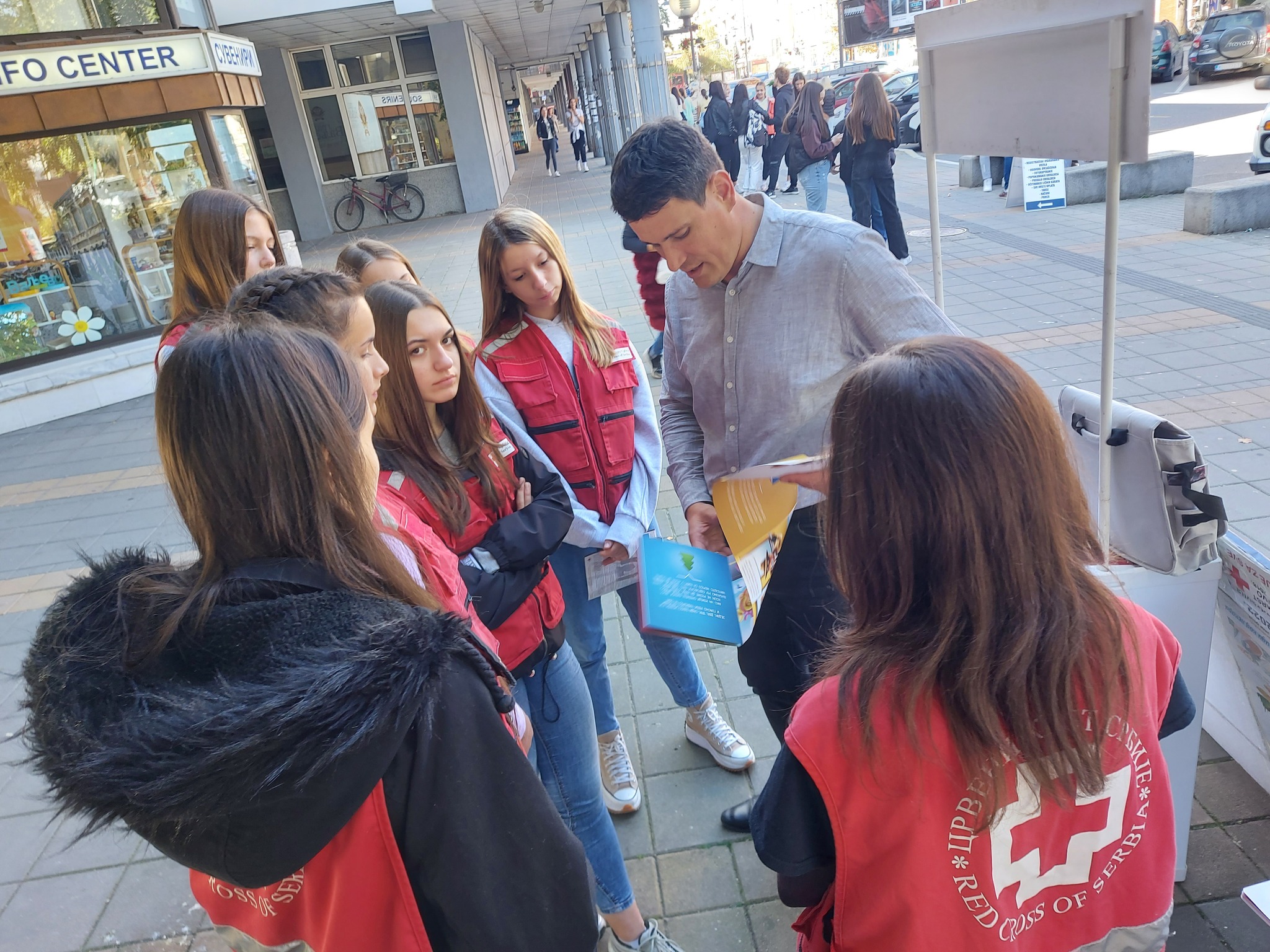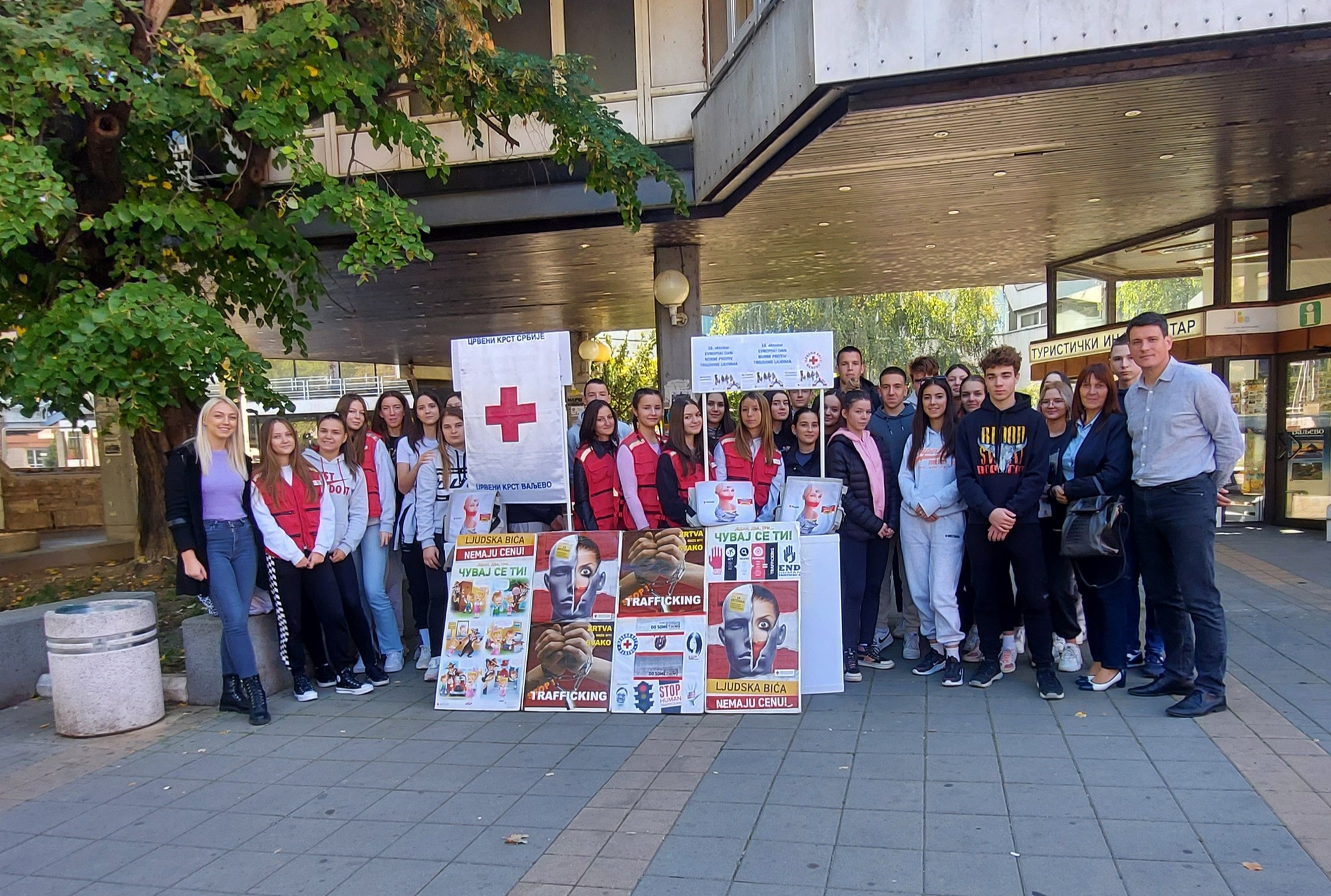 Crveni krst Valjevo je u utorak na gradskom trgu od 11 časova obeležio 18. oktobar – Evropski dan borbe protiv trgovine ljudima. Ovaj datum u kalendar važnih datuma, uvrstila je Evropska komisija 2007. godine, od kada se i obeležava u svim zemljama članicama. Crveni krst Srbije od 2005. godine u kontinuitetu sprovodi aktivnosti na prevenciji trgovine ljudima. Metoda koja je odabrana za ovu priliku je javna prezentacija programa, prevashodno učenicima druge godine medicinske škole, konkretno jedne odeljnske zajednice. Na takav način uz prolaznike na Gradskom trgu, bili smo u prilici da informišemo i motivišemo mlade ljude, da postanu vršnjački edukatori i uključe se u program.