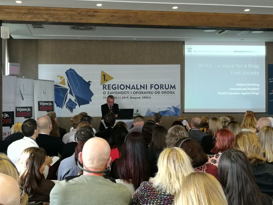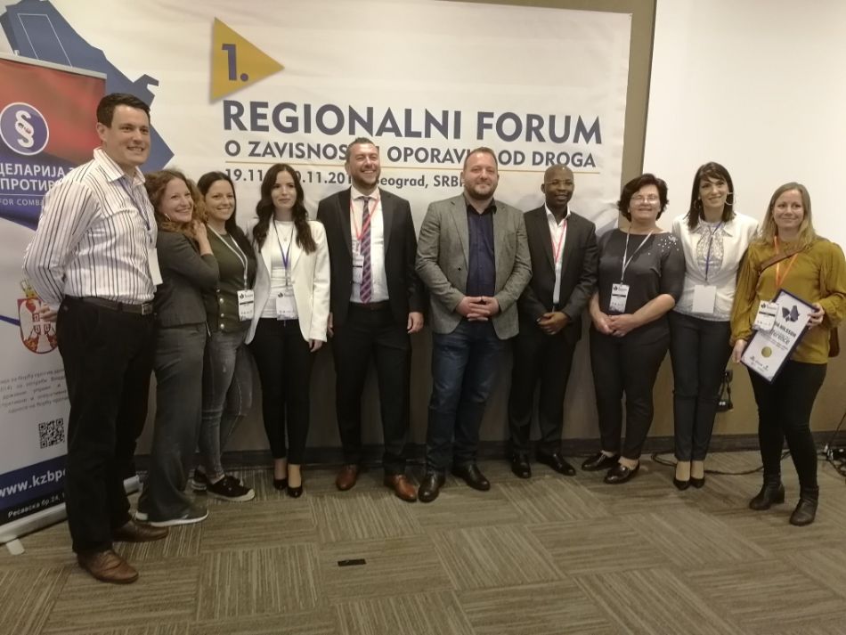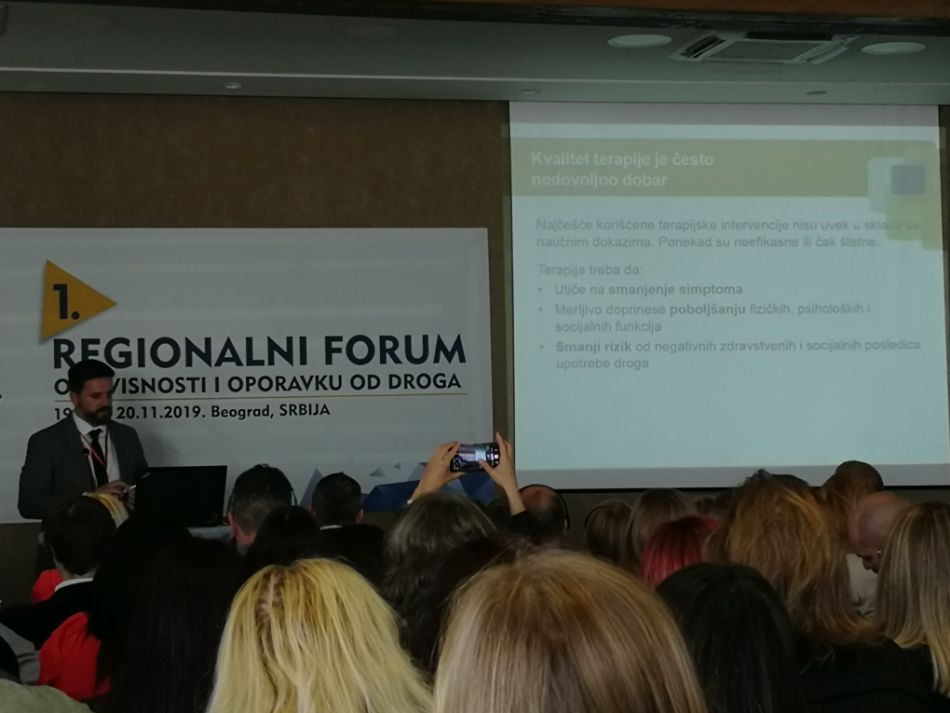 Crveni krst Valjevo je, u okviru aktivnosti u novembru – mesecu borbe protiv bolesti zavisnosti, a na poziv organizatora foruma koji nas je prepoznao kao relevantnog partnera, učestvovao na prvom međunarodnom regionalnom forumu o zavisnosti i oporavku od droga koji je održan 19. i 20. novembra u Beogradu. Ovaj skup, sa značajnim međunarodnim učešćem, okupio je 170 eksperata, domaćih i inostranih, a koji se bave drogama. Takođe, ovaj skup, je okupio i sve ključne aktere, predstavnike najeminetnijih svetskih, kontinetalnih ali i regionalnih institucija koje se bave zavisnošću, oporavkom te prevencijom zloupotrebe droga; od lokalnih nevladinih organizacija, preko predstavnika državnih organa i institucija Srbije (direktor kancelarije za borbu protiv droga – Milan Pekić), Bosne i Hercegovine (Ministarstvo unutrašnjih poslova Republike Srpske – Ilija Plavša), Crne Gore (Ministarstvo zdravlja – Jasna Sekulić) i Hrvatske (Zavod za javno zdravstvo – Sanja Mikulić), do svetske federacije protiv droga (WFAD) i Kancelarije Ujedinjenih nacija za borbu protiv droge i kriminala (UNODC).