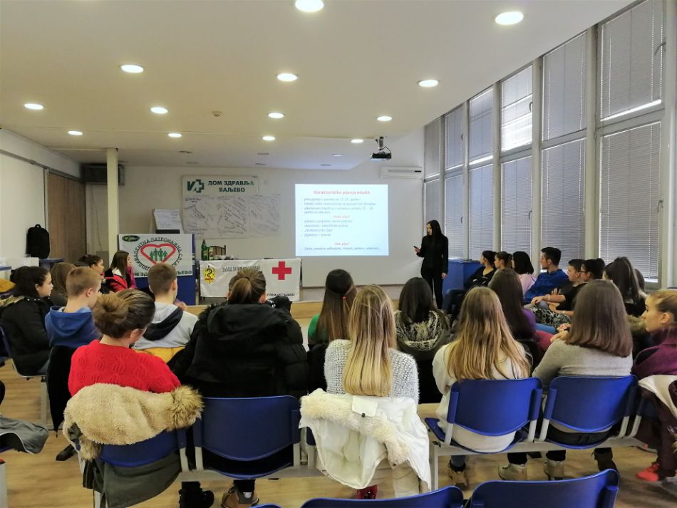 Crveni krst Valjevo je u saradnji sa partnerima iz Doma zdravlja Valjevo – psihologom Savetovalištva za mlade i Službom polivalentne patronaže, kao i saradnicima iz Zavoda za javno zdravlje Valjevo, u periodu od 20. do 27. novebmra u Edukativnom centru Doma zdravlja Valjevo, realizovao drugi deo obuke za vršnjačke edukatore na temu prevencije alkoholizma kod mladih u kojoj su učestvovali učenici prvog i drugog razreda pet srednjih škola iz Valjeva: Medicinske škole, Ekonomske škole, Tehničke škole, Valjevske Gimnazije i Poljoprivredne škole sa Domom učenika.