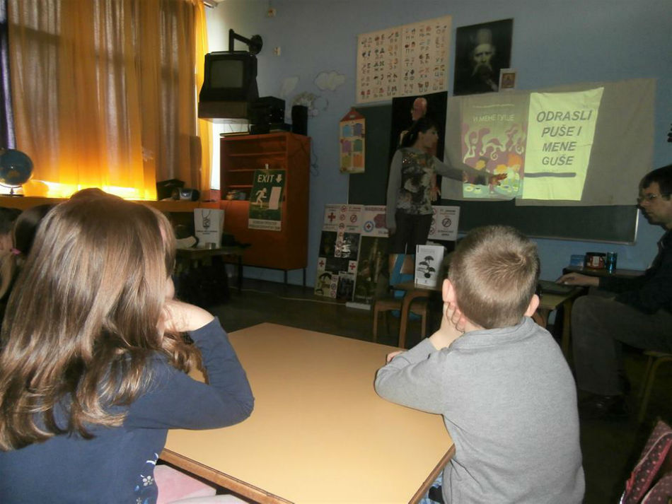 U sklopu prevencije „Bolesti zavisnosti“ Crveni krst Valjevo je realizovao predavanje i kreativnu radionicu za predškolce i u OŠ „Nada Purić“ pod sloganom „Odrasli puše i mene guše“. Sa velikom pažnjom deca su slušala o štetnosti i uticaju duvanskog dima.