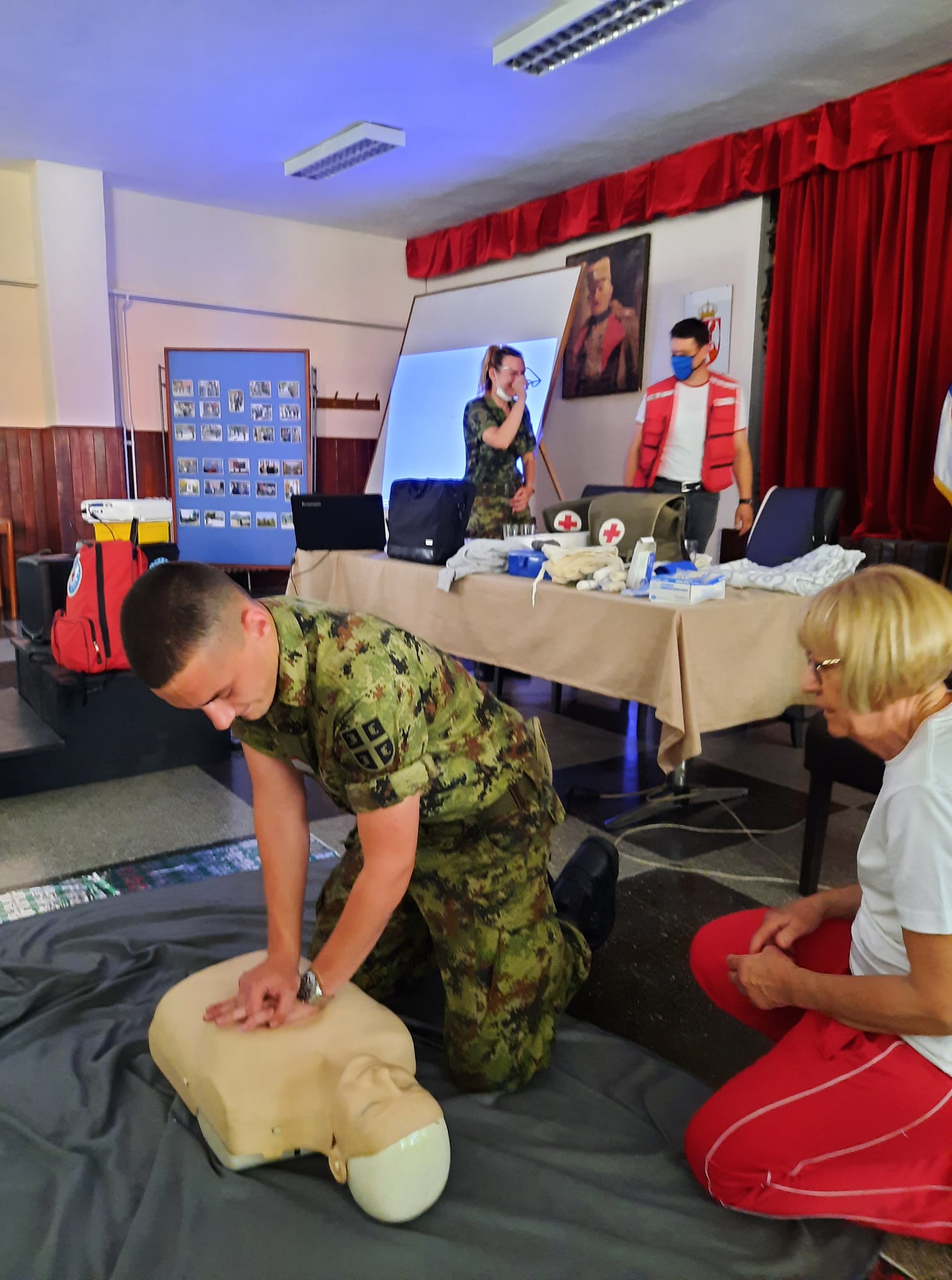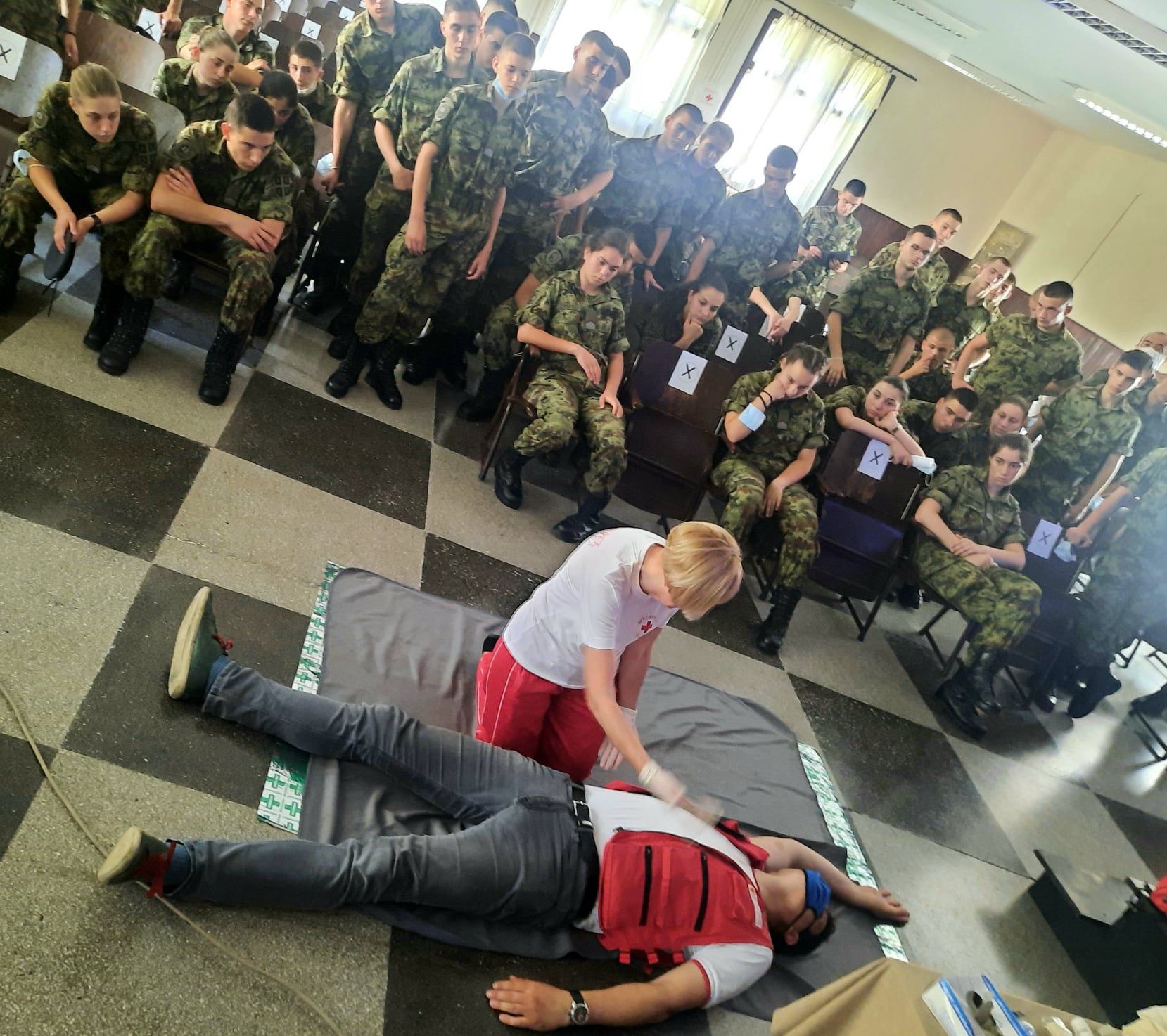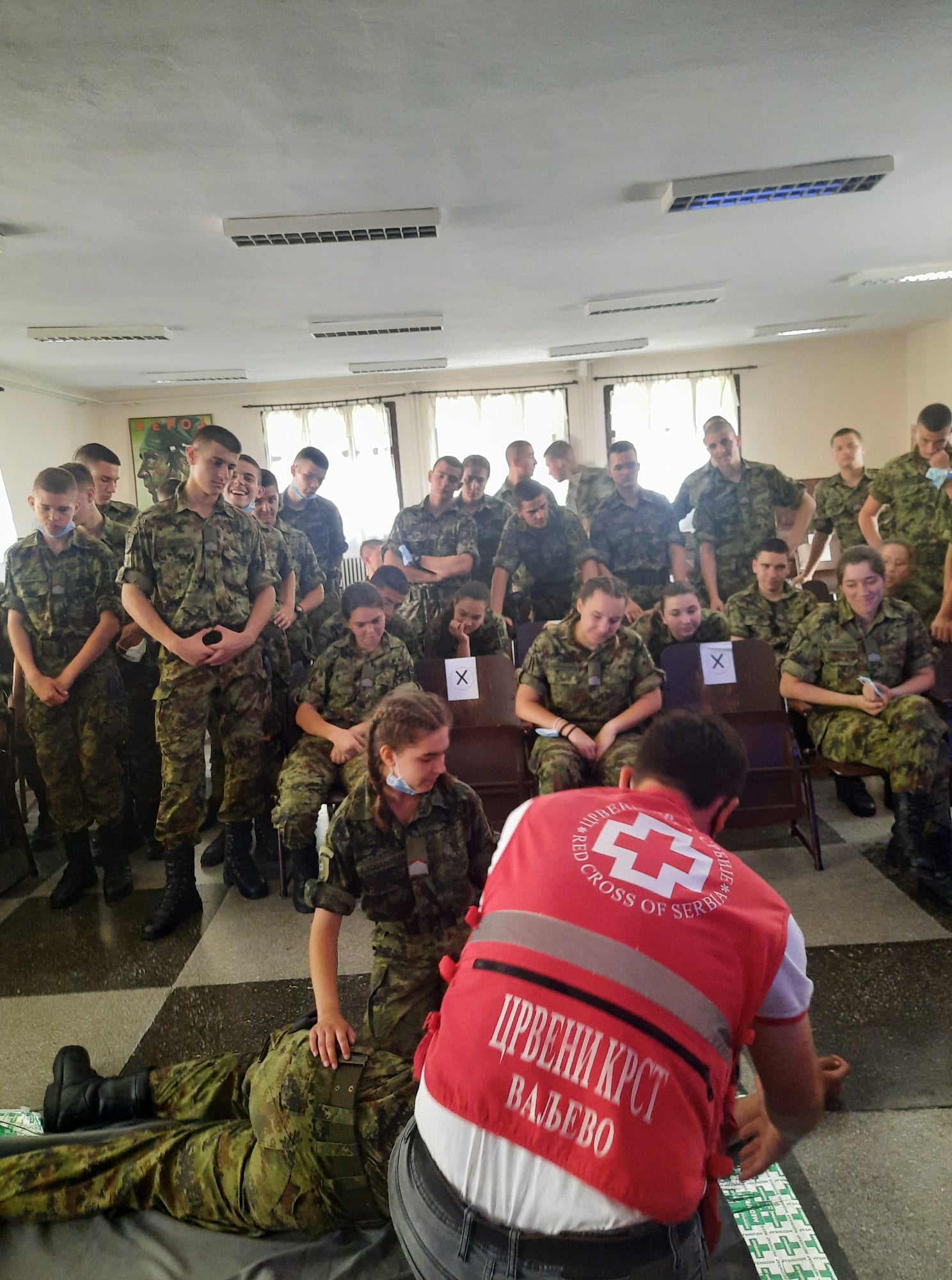Crveni krst Valjevo je u sredu 23. juna, za potrebe 58 pripadnika Vojske Srbije u prostoru kasarne „Vojvoda Živojin Mišić“ – Drugi centar za obuku Vojske Srbije u Valjevu, realizovao osnovnu obuku iz pružanja prve pomoći