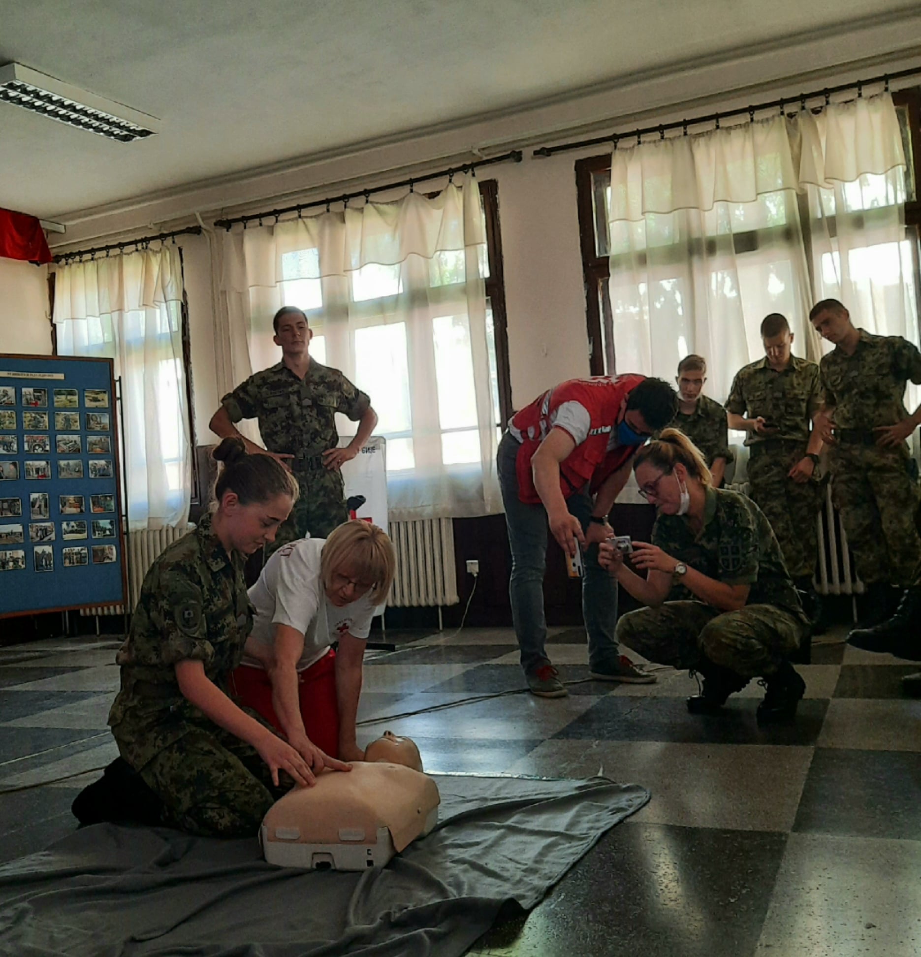 Obuku za pripadnike Vojske Srbije na odsluženju vojnog roka, te srednje stručne vojne škole, a na zahtev Komande kasarne u Valjevu, Crveni krst Valjevo je realizovao kao nekomercijalnu obuku u okviru razvoja vojno civilne saradnje u zajednici na lokalnom nivou, koju realizovala je naša Zorica Jovanović, licencirani predavač i instruktor prve pomoći uz asistenciju demonstratora Marije Todorić i Aleksandra Tomića. Obuci u prostoru restorana kasarne, uz raspored slušalaca koji je u saglasju sa važećim epidemiološkim merama, prisustvovalo je 58 vojnika i vojnikinja Vojske Srbije.