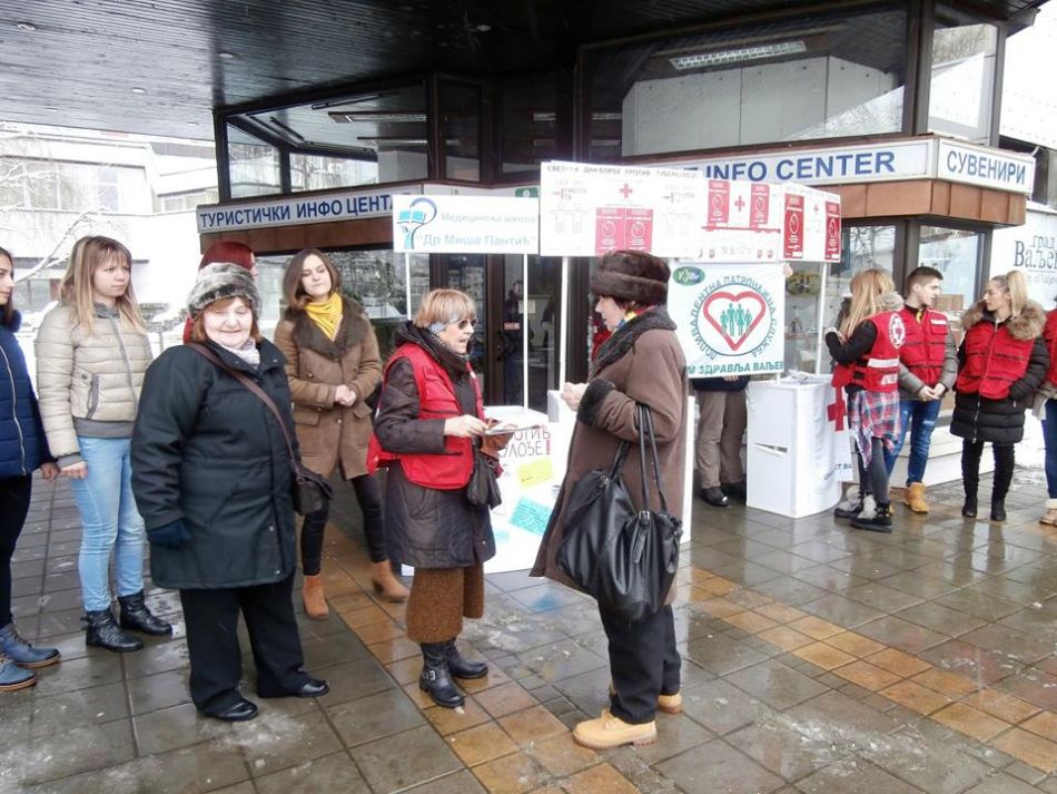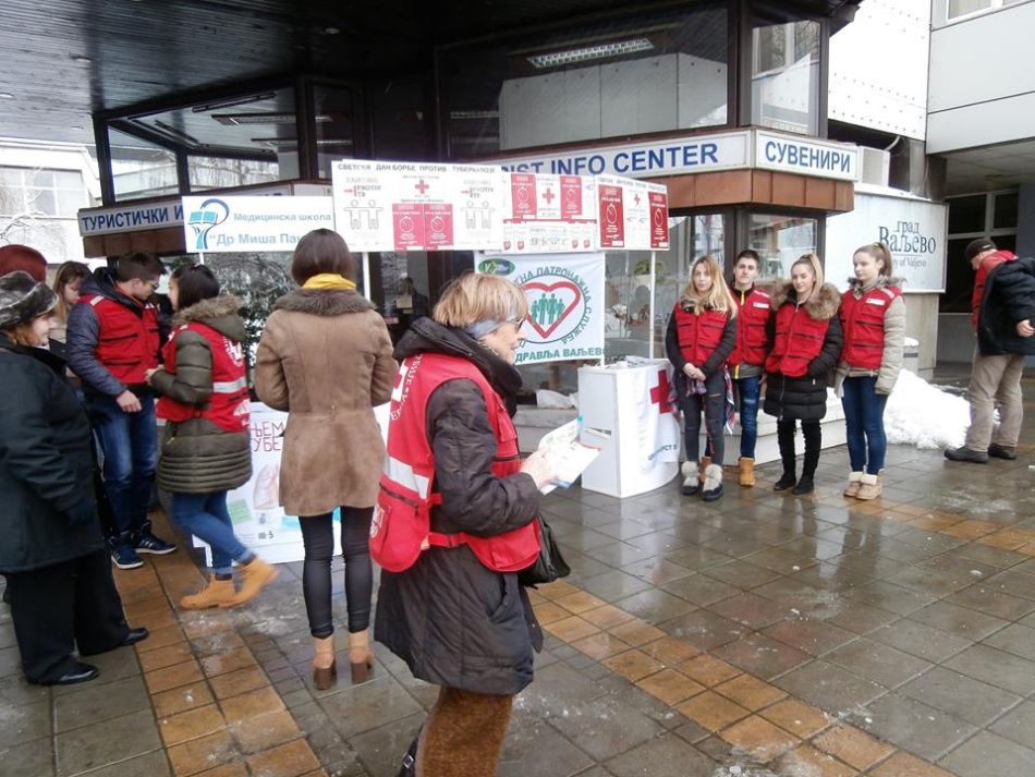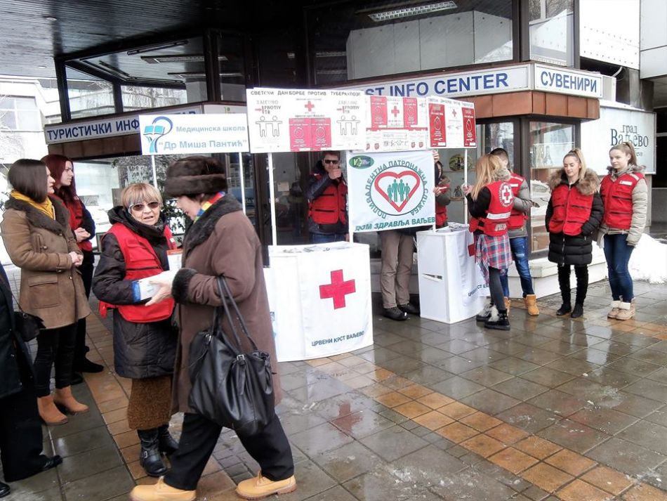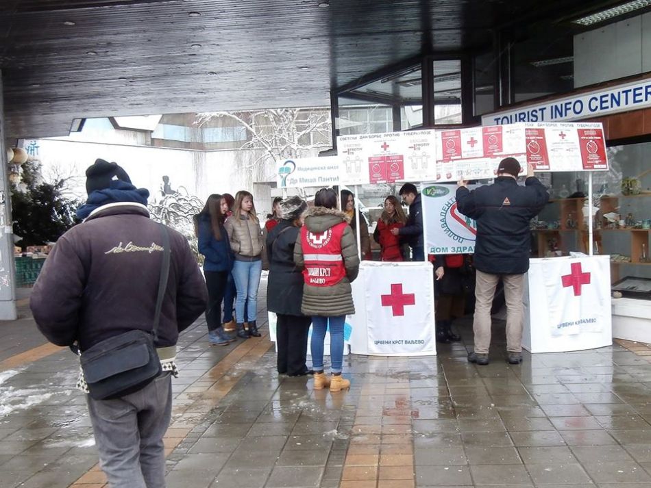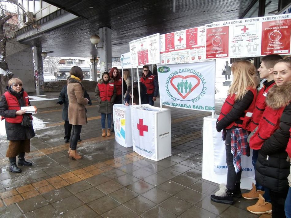 Crveni krst Valjevo je, i ove godine po izuzetno hladnom vremenu i velikom snegu, aktivno obeležio 24. mart Svetski dan borbe protiv tuberkuloze pod sloganom „Zajedno u borbi protiv tuberkuloze“, realizacijom cenralne ulične manifestacije na gradskom trgu u Valjevu u skladu sa preporukama Crvenog krsta Srbije. Aktivnost smo realizovali na Gradskom trgu postavljanjem prigodnih štandova sa jasnim porukama kako bi skrenuli pažnju sugrađana na ovaj dan a mladi volonteri Crvenog krsta Valjevo su informisali prolaznike o značaju prevencije tuberkuloze deljenjem edukativnog materijala.