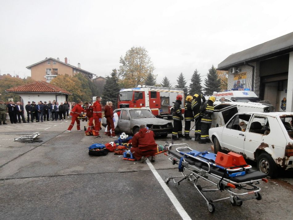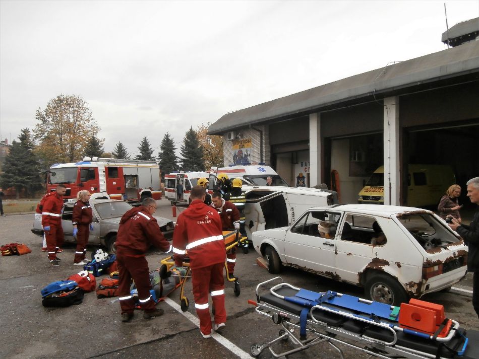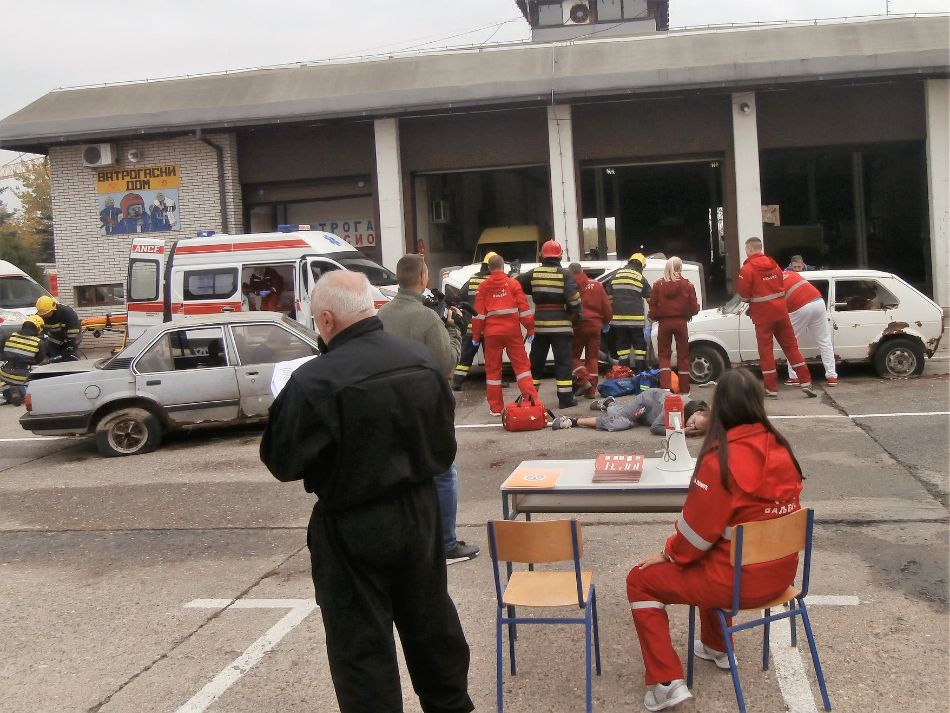 Crveni krst Valjevo je u sredu, 24. oktobra, na poziv Odeljenja za vanredne situacije MUP-a u Valjevu, učestvovao u zajedničkoj pokaznoj vežbi ovlašćenih i osposobljenih subjekata za delovanje u vanrednim situacijama, kroz realistički prikaz povreda i stanja sa svojim demonstratorima i glumcima koje su za javnost verodostojno i profesionalno sproveli obučeni volonteri Crvenog krsta Valjevo na prostoru ispred Vatrogasnog doma u Valjevu. Na vežbi je izvedena simulacija saobraćajne nezgode sa više učesnika, sa slupanim i prevrnutim automobilima u kojima su teško povređeni vozači i drugi učesnici u saobraćaju a obučeni volonteri iz prve pomoći Crvenog krsta Valjevo su verno prikazali i iscenirali povrede koje su organizatori precizno planirali i definisali. U simulaciji su zajeno učestvovali Vatrogasno-spasilački bataljon u Valjevu, Saobraćajna policija PU Valjevo, Hitna pomoć Doma zdravlja Valjevo, Medicinska škola Valjevo i Crveni krst Valjevo. Cilj ove javno-pokazne vežbe je institucionalno povezivanje i uvežbavanje, kako bi se prisutnima što realnije demonstrirali postupci kao i posledice saobraćajnih nesreća a samim tim i skrenula pažnja na mere koje se moraju zajednički preduzeti kako bi se one sprečile.