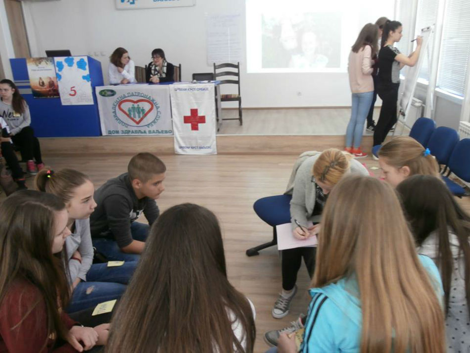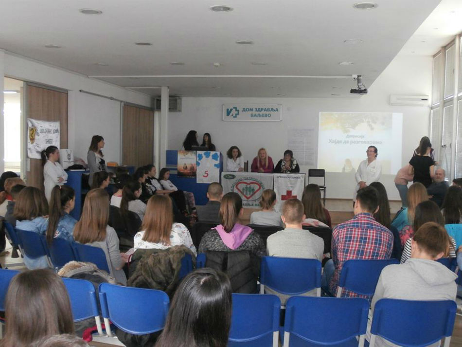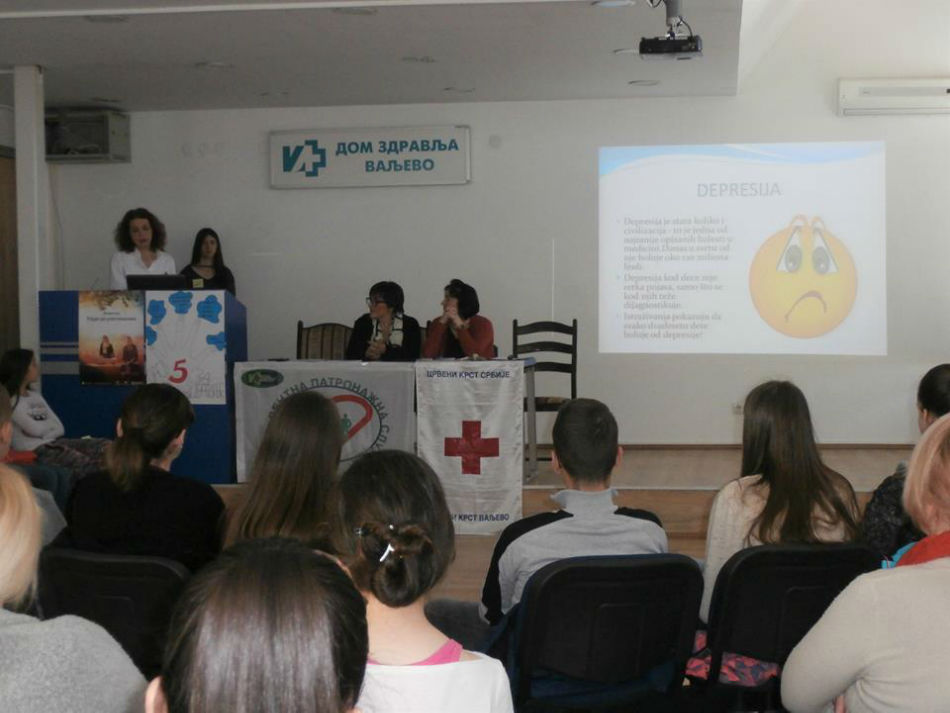 Crveni krst Valjevo aktivno učestvuje u realizaciji radionica za vršnjačke edukatore na temu „Depresija, hajde da razgovaramo“ koje se održavaju u Edukativnom centru Doma zdravlja Valjevo u periodu od 24. do 28. aprila, nastavljajući tematsku podršku ovogodišnjem obeležavanju Svetskog dana zdravlja. Radionice su namenjene učenicima sedmog razreda gradskih osnovnih škola a kao podrška mlađim učesnicima radionica, tu su bili i učenici trećeg razreda Medicinske škole u Valjevu. Sa učenicima su razgovarali psiholog, pedijatar, patronažna sestra, profesor iz zdravstvene nege Medicinske škole, predstavnici Zavoda za javno zdravlje i zdravstvena saradnica Crvenog krsta Valjevo.27.04.2017.