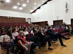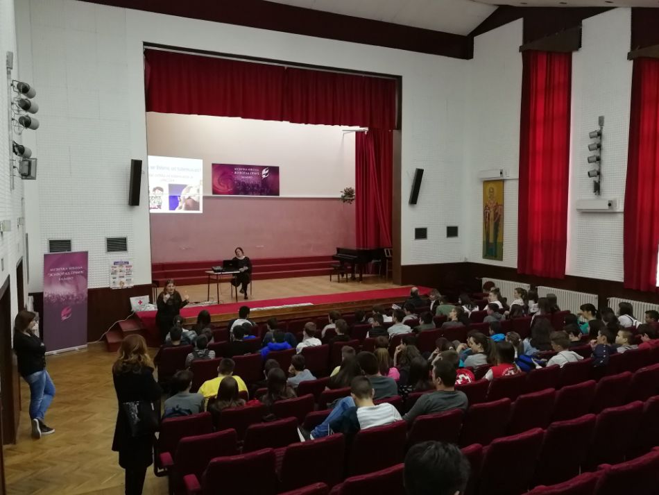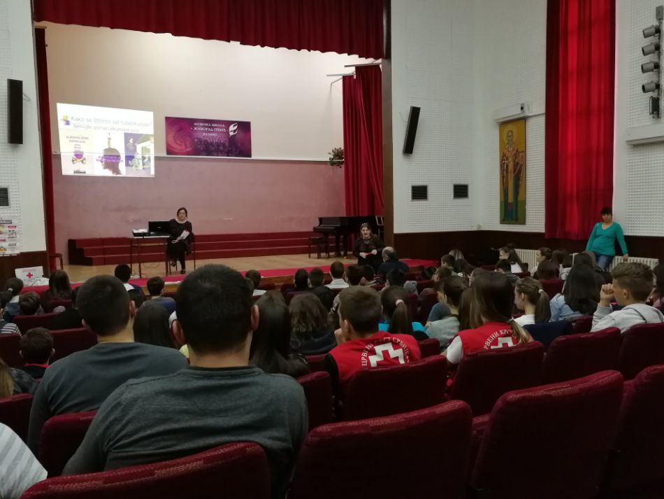 Aktivnost smo nastavili u sali Muzičke škole gde je realizovana tribina i predavanje za učenike sedmog razreda Prve osnovne škole kojima je predočeno da je vrlo bitno da se poštuju preporuke zdravih stilova života (zdrava ishrana, redovna fizička aktivnost, održavanje higijene...), na koji način da se zaštite od TBC-a, da steknu naviku da se obrate lekaru zbog nekih simptoma sličnih prehladama i gripu, itd. Mladima smo govorili i o faktorima rizika, načinima prenošenja i zaštite od infekcije bacilom tuberkuloze ali i o važnosti borbe protiv predrasuda - važno da jedni drugima budu podrška kako bi se oduprli nezdravim stilovima života i bolestima zavisnosti čime jačaju svoje zdravlje.