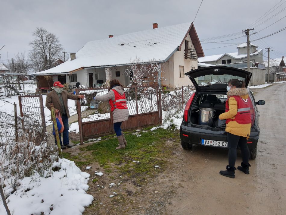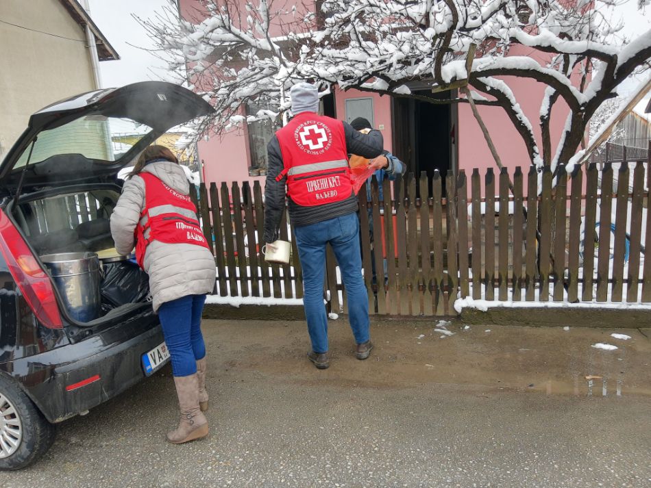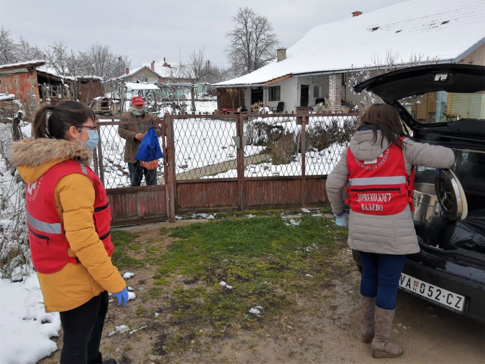 25.03.2020. – NI SNEG NI HLADNO VREME – NISU BILI PREPREKA da zaposleni i volonteri Crvenog krsta Valjevo stignu na vreme do onih koji su se nadali i čekali svoje toplo kuvano jelo – na kućnom pragu – namenjeno korisnicima narodne kuhinje starijim od 65 godina kojima je zabranjeno kretanje u vreme vanrednog stanja... Ostali svoje kuvane obroke preuzimaju i dalje po rasporedu na 4 distributivna punkta u gradu... Trenutno pripremamo i isporučujemo 547 obroka dnevno...