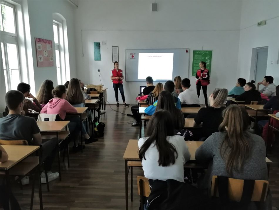 Napominjemo da je Crveni krst Valjevo sa svojim partnerima i saradnicima u prošloj godini realizovao 2 izuzetne obuke za vršnjačke edukatore (prvi deo od 25.-28.09. a drugi deo od 20.-27.11.2018.), koji ove godine mogu samostalno, uz našu tehničku podršku, da realizuju predavanja i radionice kao obučeni i osposobljeni vršnjački edukatori u svojim školama. Treba napomenuti da su prethodni seminari održani za učenike prvog i drugog razreda iz svih pet srednjih škola iz Valjeva, a radionicama su prisustvovali profesori i predstavnici Saveta roditelja srednjih škola. Ovoga puta realizovali su predavanja i radionice pod nazivom „Mladi i alkoholizam“ učenicima u Medicinskoj školi Valjevo.