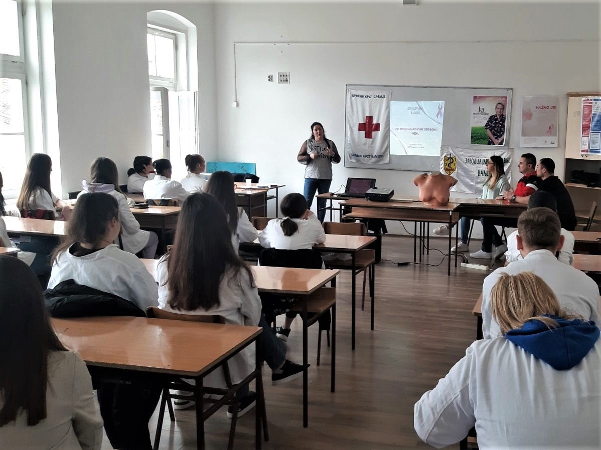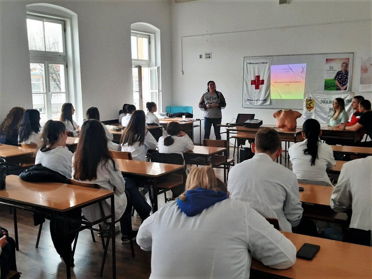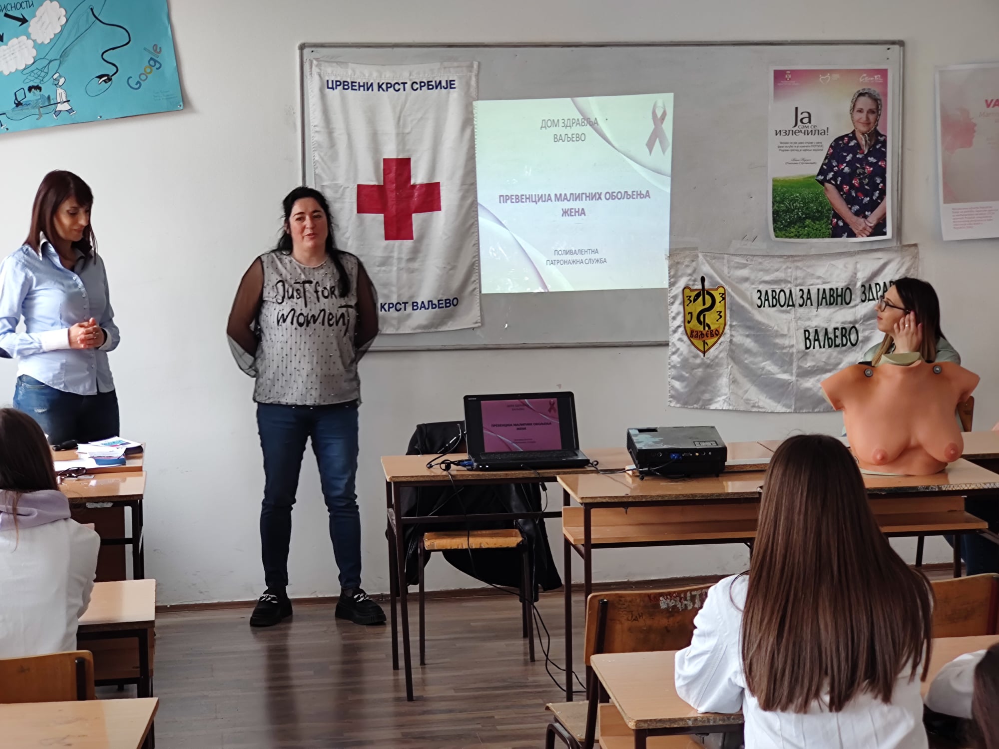 Crveni krst je za ovu priliku, u skladu sa svojom dugogodišnjom praksom, organizovao edukativno predavanje na temu „Prevencija malignih oboljenja žena“, za učenike ove škole u sardanji sa kolegama iz Doma zdravlja, službom polivalentne patronaže i Zavodom za javno zdravlje, sektor za promociju zdravlja. Tematski okvir koji smo izabrali za predavanje bio je „Prevencija malignih oboljenja žena“ sa aktivnom paralelom vezanom za malignitete muškaraca. 30.03.2022.