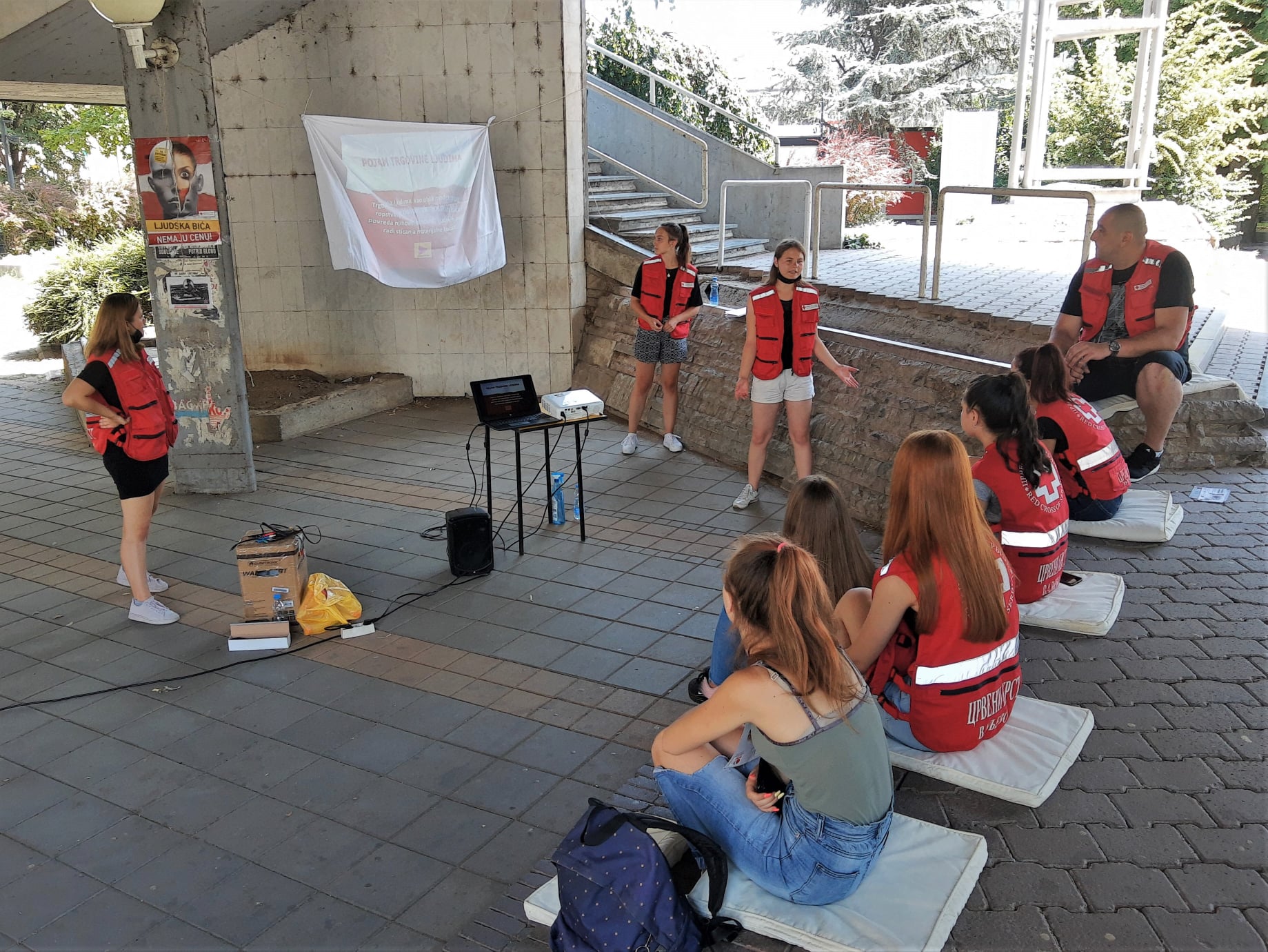 Cilj ovih promotivnih i edukativnih aktivnosti je da naše sugrađane, koji su se zatekli na trgu ili u prolazu, a putem medija i za velike broj onih koji nisu bili prisutni, zainteresujemo za temu, skrenemo pažnju na potencijalne rizike i izazove kojima mogu biti izloženi ali i da se na adekvatan i stručan način informišu iz materijala, da odslušaju pristupačna i prilagođena predavanja naših edukatorki ukoliko su zainteresovani. Predavanje je bilo prevashodno namenjeno volonterima Crvenog krsta Valjevo, što je za cilj imalo bliže upoznavanje sa programom koji oni ne realizuju, ali je bilo otvoreno i za zainteresovane sugrađane i sugrađanke. Iako je predavanje realizovano uz korišćenje standardizovane prezentacije, to je na neki načni bila i radionica „Public speaking“ zbog specifičnog ambijenta trga i zadatka da tematski okvir privuče i prolaznike sadržajem teme. Ovu aktivnost su u svojstvu predavača realizovale naše obučene edukatorke koje su pohađale seminar iz oblasti prevencije trgovine ljudima i kandidatkinje za promociju u zvanje trenera: Milica Đurđević i Anđela Janković.