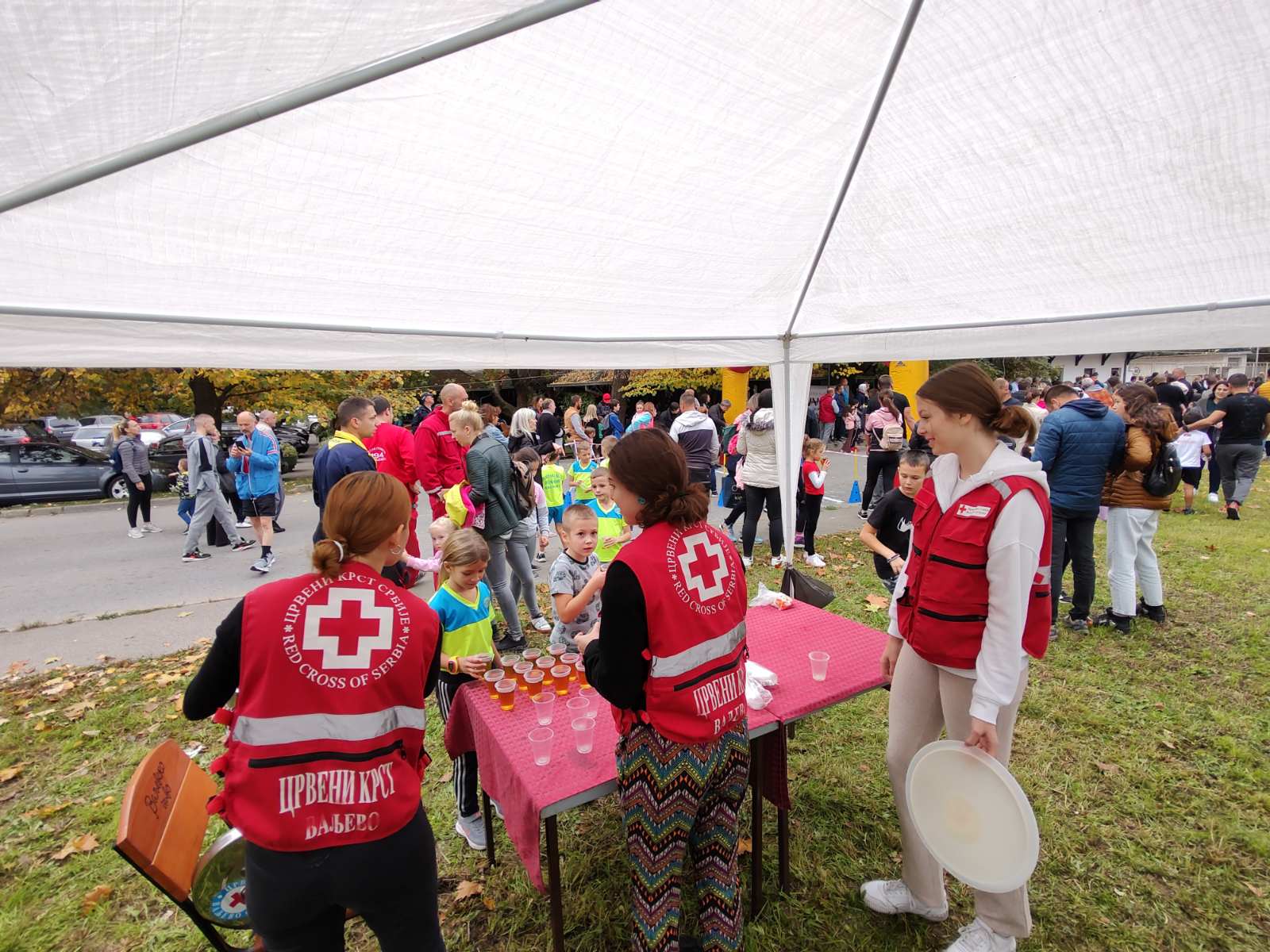 Članovi podmlatka i omladine Crvenog krsta Valjevo su delili učesnicima i posetiocima tople. Crveni krst Valjevo tradicionalno učestvuje u održavanju ove manifestacije u interesu povezivanja i aktivne saradnje na realizaciji važnih događaja u našem gradu, kao i promocije sporta i zdravih stilova života. Za sam kraj dana naša proslavljena olimpijka Olivera Jevtić, posetila je naš štand i uppoznala se našim volonterima.