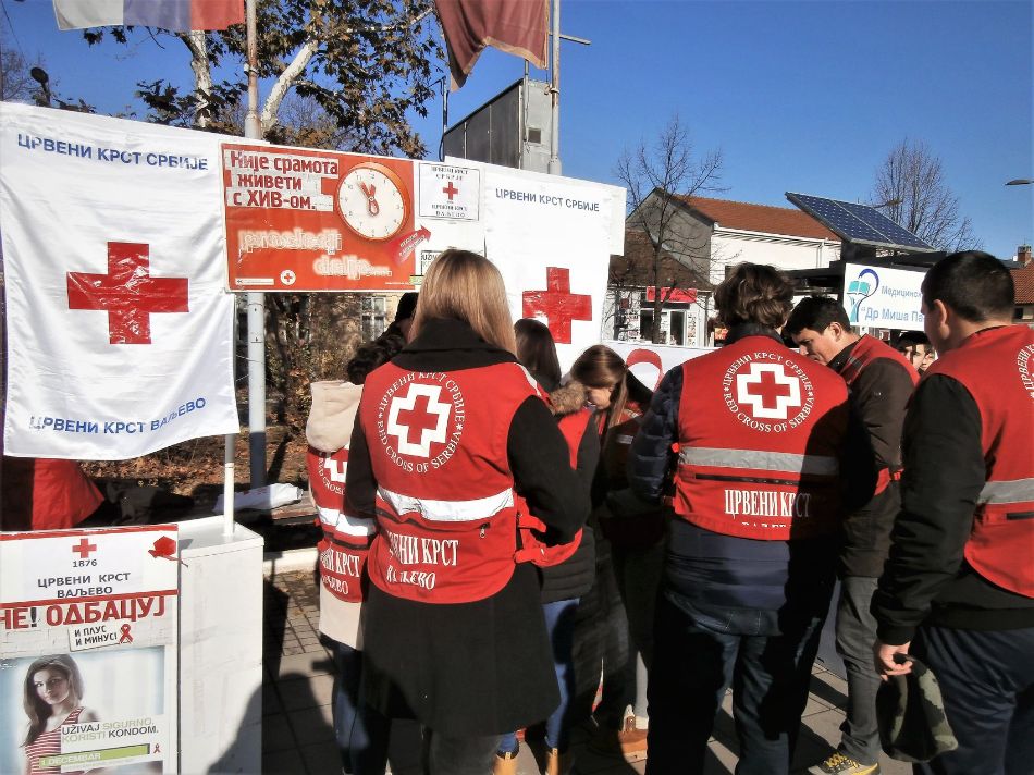 Naši volonteri omladine Crvenog krsta Valjevo su delili adekvatan zdravstveno vaspitni materijal i kondome prisutnim sugrađanima, posetiocima i prolaznicima, koji su mogli da vide postavku primerenu obeležavanju ovog značajnog datuma u kalendaru zdravlja, sa jasnim porukama i podacima o HIV-u i SIDI a u periodu od 13-16 časova takođe na Gradskom trgu, zainteresovani su mogli da obave savetovanje i testiranje na HIV koje je anonimno, dobrovoljno i poverljivo, u specijalizovanom vozilu Doma zdravlja Valjevo u realizaciji Asocijacije Duga Šabac.