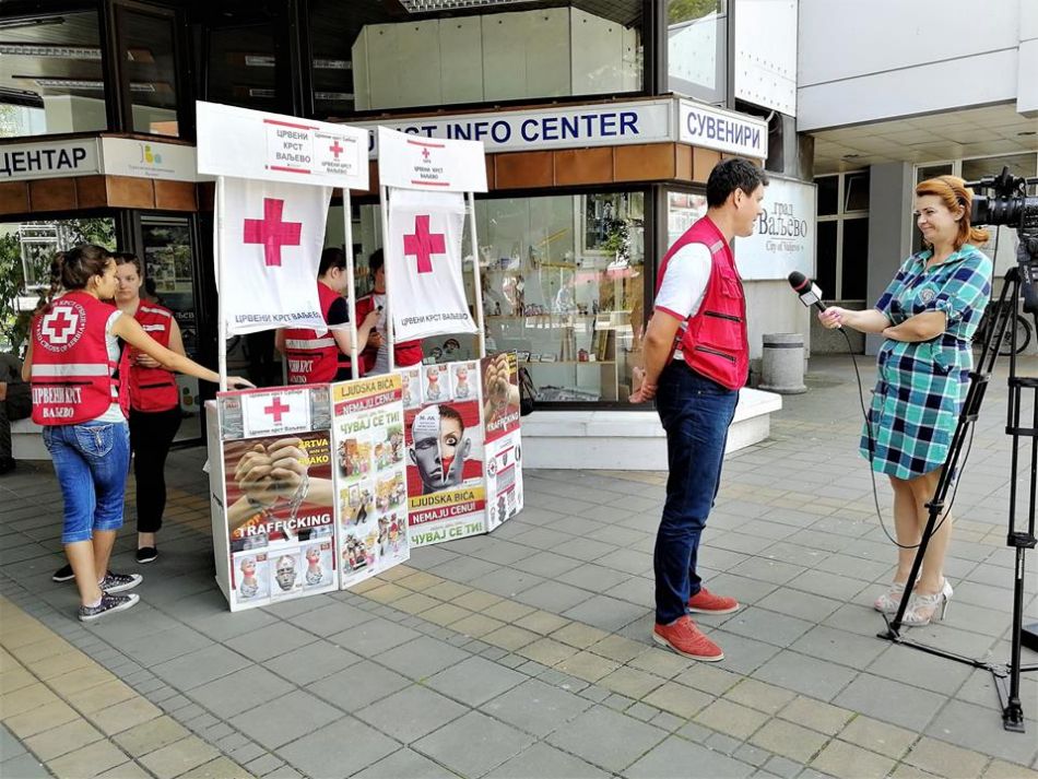 Dakle, obzirim da Crveni krst Valjevo kontinuirano sprovodi program „Preventivni paket“ sa osnovcima, srednješkolcima, studentima ali i decom sa smanjenim mogućnostima, ova centralna ulična manifestacija bila je prilika da se sugrađanima koji nisu ciljna grupa predavanja predoče važne činjernice u vezi sa ovim važnim društvenim problemom od koga nije izolovana ni jedna zemlja na svetu, pa tako postoji i kod nas. Volonteri su u visokom procentu uspeli da pažnju sugrađana pridobiju i ukažu im na potrebu unapređivanja bezbednosne kulture. Aktivnost je realizovalo 8 volontera omladine Crvenog krsta Valjevo i saradnik za podmladak i omladinu, trener za vršnjačko obrazovanje o borbi protiv trgoivine ljudima, Aleksandar Tomić. Ova tema bila je interesantna kako regionalnim, tako i lokalnim medijima pa su na aktiovnosti bili prisutni predstavnici TV „Vujić“ TV „Marš“ TV „Va Plus“.
