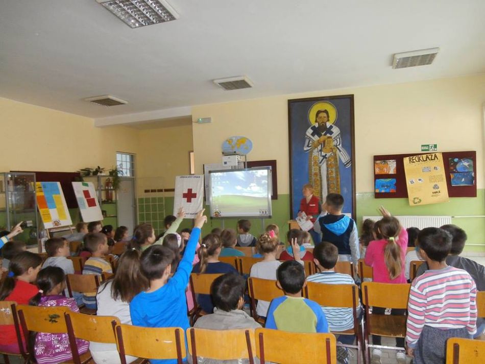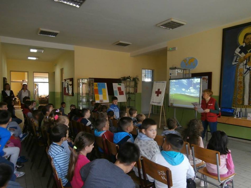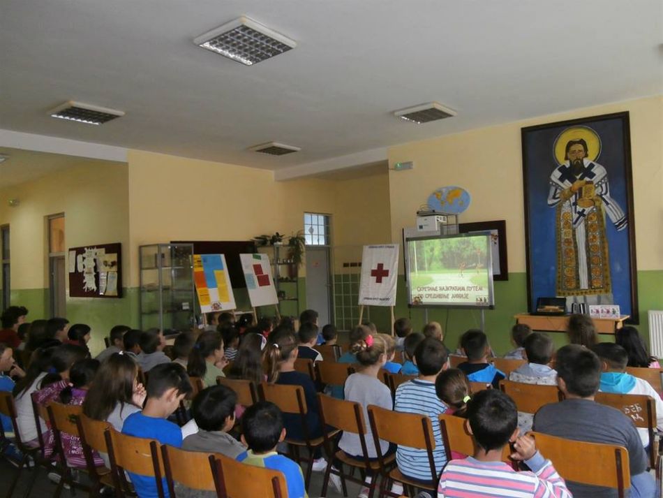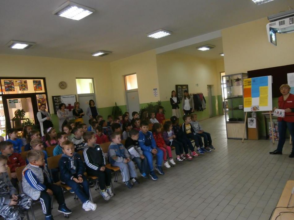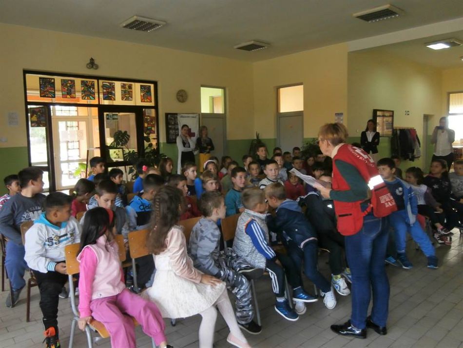 BEZBEDNOST DECE U SAOBRAĆAJU: Crveni krst Valjevo je 04.10.2017. u okviru zvaničnog programa Dečje nedelje grada Valjeva, pod sloganom „Gradimo mostove među generacijama - za radost svakog deteta“ nastavio kontinuirane aktivnosti namenjene učenicima u seoskim matičnim školama, aktivnosti za učenike prvog i drugog razreda u ovoj školi, kroz prikazivanje video prezentacija, filmskih segmenata o bezbednom ponašanju u saobraćaju i podelom namenski urađenog promotivnog materijala za sve prisutne učenike.