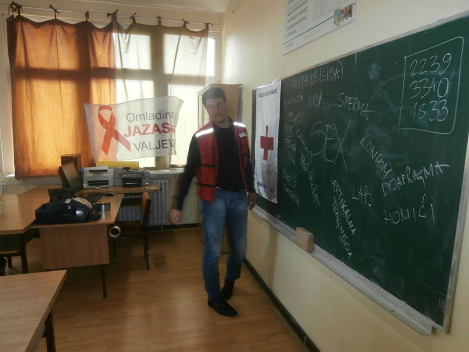 Crveni krst Valjevo je 11.maja 2017. u okviru Nedelje Crvenog krsta, uz ostale aktivnosti pod sloganom "Svuda za svakoga", realizovao predavanje i radionicu na temu prevencije HIV-a i SIDE u „Prvoj osnovnoj školi“ za zainteresovane učenike sedmog i osmog razreda. Predavanja je realizovao trener za vršnjačke edukatore Crvenog krsta Valjevo i Omladine JAZAS Valjevo, Tomić Aleksandar a cilj ovih predavanja je širenje svesti o polno prenosivim infekcijama ali i sidi kao najtežoj seksualno transmisivnoj bolesti i kako se pravilno zaštititi.