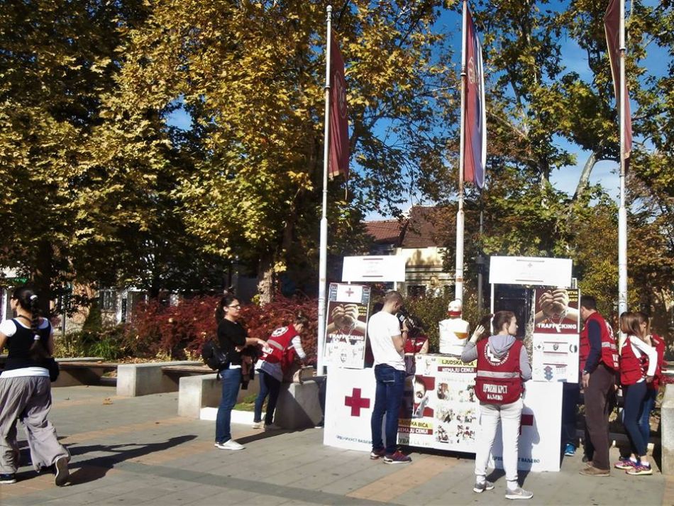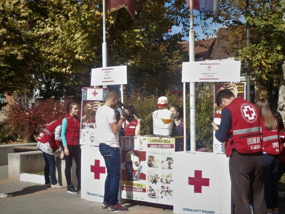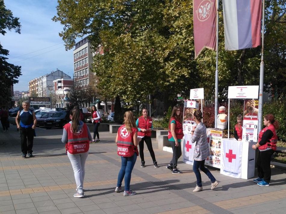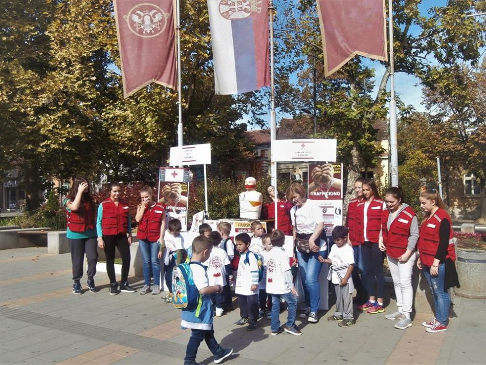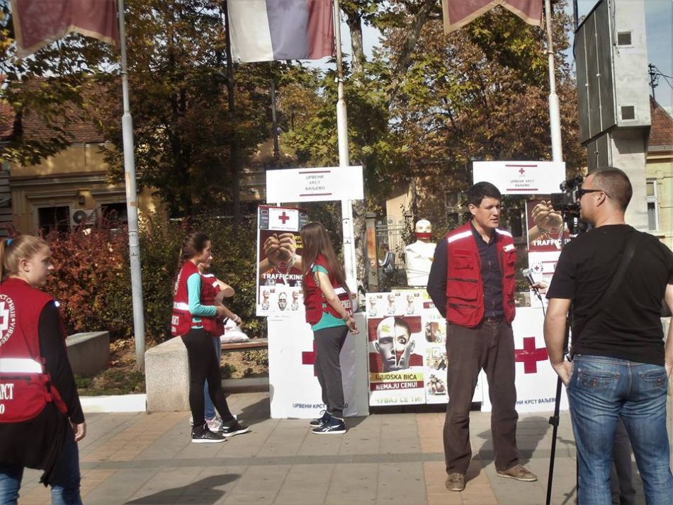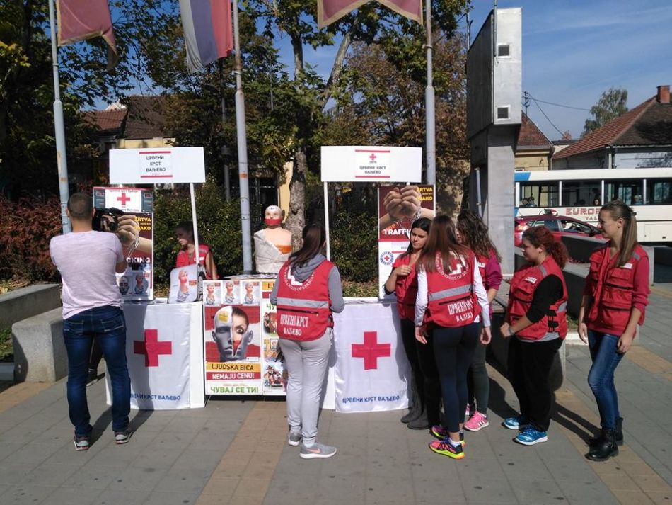 Crveni krst Valjevo je svojom postavkom na Gradskom trgu u prisustvu sugrađana i predstavnika medija obeležio 18. oktobar – Evropski dan borbe protiv trgovine ljudima. Ova instalacija je u svom centralnom delu prikazala lutku, nalik onoj koja predstavlja zvanični vizuelni identitet programa “Preventivni paket”. Cilj nije bio samo unificiranje postavke već i dodatno skretanje pažnje na tu najvažniju poruku da “ljudi nisu roba” i da “ljudska bića nemaju cenu”. Ovu aktivnost mediji su objavili u posebnim prilozima na Regionalnoj VTV Valjevo, TV VA-PLUS Valjevo i RTV MARSH Valjevo kao i drugi elektronski mediji i portali.