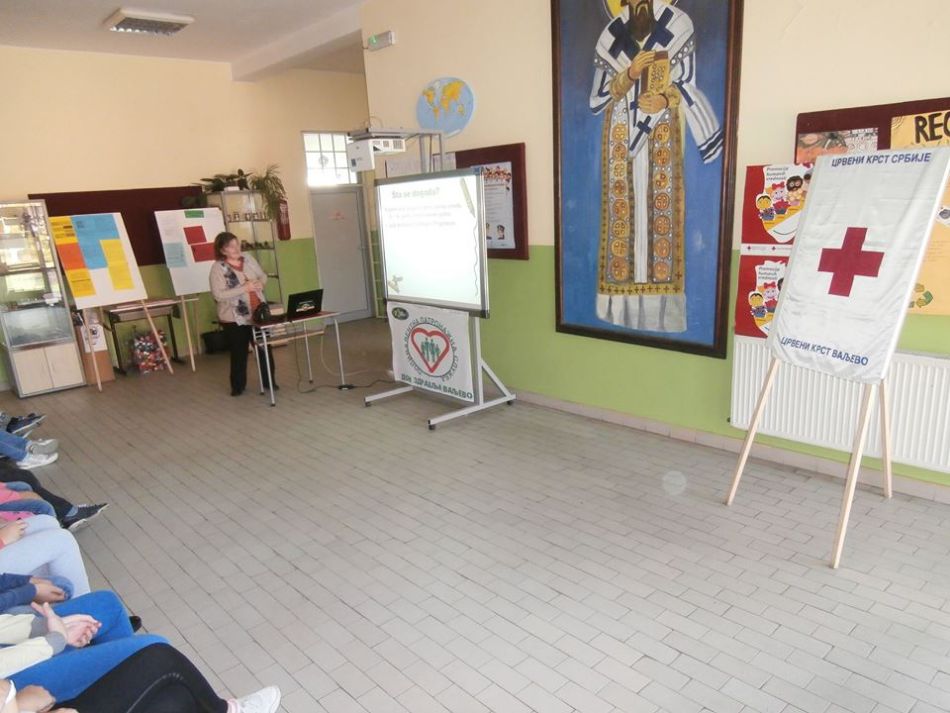 Crveni krst Valjevo je 11.10.2017. za drugu grupu učenika 4. i 6. razreda u ovoj školi pod sloganom „Gradimo mostove među generacijama - za radost svakog deteta“ realizovao izuzetno prihvaćeno interaktivno predavanje i radionice u okviru PROGRAMA: PHV (promocija humanih vrednosti)