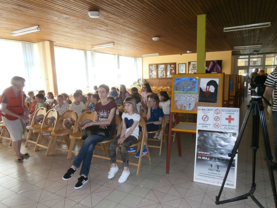 Program je upotpunila prigodna izvedba đaka škole i dece iz vrtića „Pčelica“ i horić „Srculence“ a potom su bile uručene nagrade najuspešnijim učesnicima na likovnom i literarnom konkurstu pod sloganom „Svaka cigareta smeta“. Konkurs je bio namenjen valjevskim predškolcima i osnovcima sa gradskog i seoskog područja. Svake godine 31. maja, Crveni krst Valjevo i njegovi partneri obeležavaju Svetski dan borbe protiv duvanskog dima, ističući zdravstvene i druge rizike koje izaziva upotreba duvana i zalažu se za preventivni rad, prvenstveno sa mladima kako bi pozitivno uticali na njihov razvoj i svest o štetnosti duvanskog dima i upotrebe duvana.